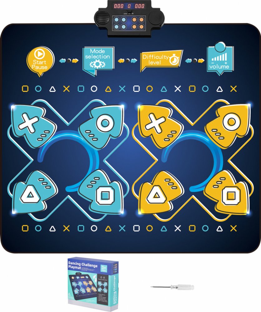 Tancuj svou cestuNaše taneční podložka nabízí 2 režimy (režim pro jednoho hráče s 8 úrovněmi a 3 úrovněmi obtížnosti: A režim PK pro dva hráče se 3 herními režimy: Časový PK, Neomezený PK a Režim ukládání) a 8 písní. Přepínejte a tancujte podle svého gusta!Režim pro jednoho a dva hráčeElektronická taneční podložka je plná vzrušení - vyberte si režim pro jednoho hráče pro sólové taneční seance nebo režim pro dva hráče pro dvojnásobnou zábavu s kamarádem. Ať už hrajete jakkoli, taneční parket je váš!Snadné skladování a přenášeníTato měkká a skládací elektronická taneční podložka se úhledně složí pro pohodlné skladování a snadno se vejde do tašky pro dobrodružství na cestách. Napájejte ji 3 bateriemi AA (nejsou součástí balení) a tančete kdykoli a kdekoli!Navrženo pro vásNaší uživatelsky přívětivé a intuitivně navržené taneční podložce snadno porozumí i ti nejmenší a snadno si s ní zahrají. Je vyrobena z odolného vinylu s kompozitním povrchem PE OPP, je robustní a má dlouhou životnost. Protiskluzová spodní strana z materiálu PEVA ji udrží na místě, takže se můžete soustředit na zábavu!Ideální dárek pro dětiNaše taneční podložka je dodávána v elegantní dárkové krabici a je ideální volbou ke Dni dětí, Vánocům nebo narozeninám. Povzbuďte své dítě, aby se odpoutalo od obrazovek a našlo radost z tance.Zábava se snoubí s raným vzdělávánímTato taneční podložka pro děti zábavným a vzrušujícím způsobem podporuje koordinaci rukou a očí a umožňuje dětem cvičit si při hře.SpecifikaceČíslo modelu výrobku: YQ3324Materiál: hrací skříňka ABS + kompozitní povrch OPP z vinylu/PE + spodní strana PEVAStyl: samostatný, pro dva hráčeRežimy: 8 (pro jednoho hráče)/3 (pro dva hráče)Počet funkčních tlačítek: 5Počet tanečních pozic: 8Počet vestavěných skladeb: 8Velikost výrobku (včetně ovládacího boxu): 1: 40,16 x 39,37 x 1,77 palce / 1020 x 1000 x 45 mmHmotnost výrobku: 1,52 lbs / 0,69 kgZdroj napájení: 3 x AA baterie (nejsou součástí dodávky)Obsah balení1 x taneční podložka