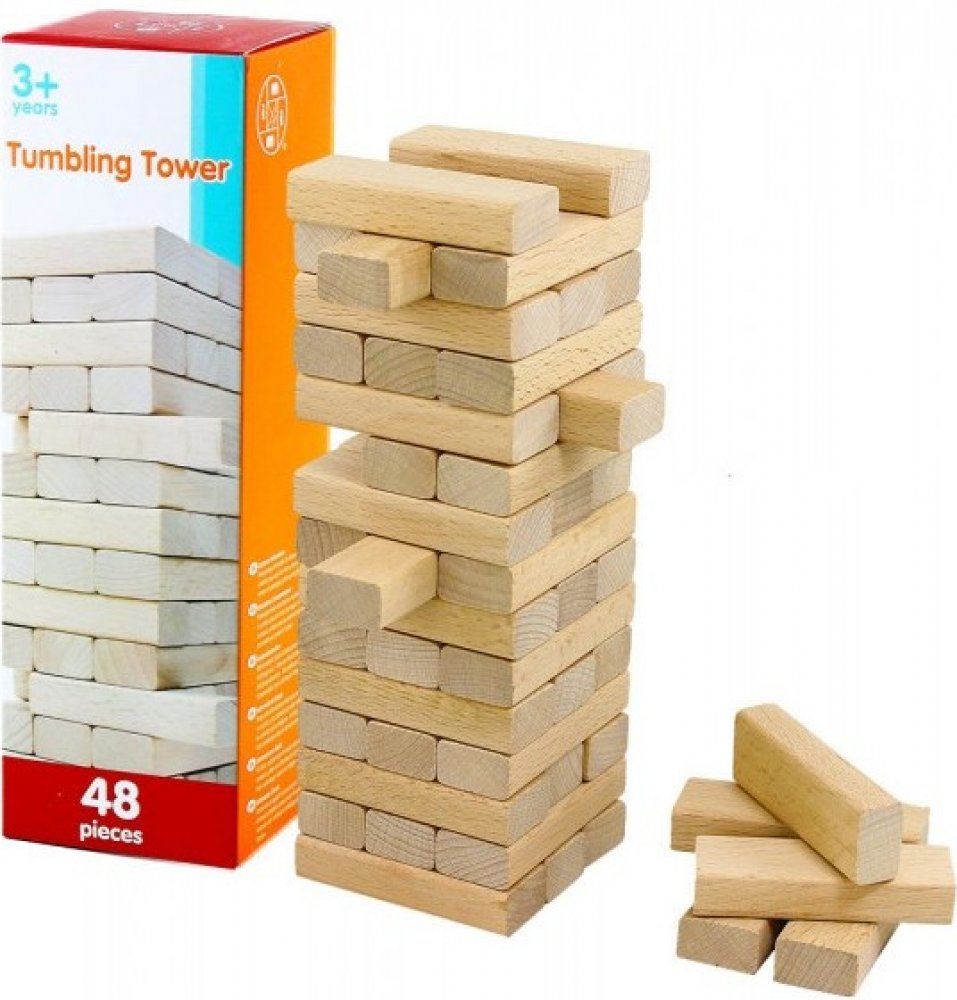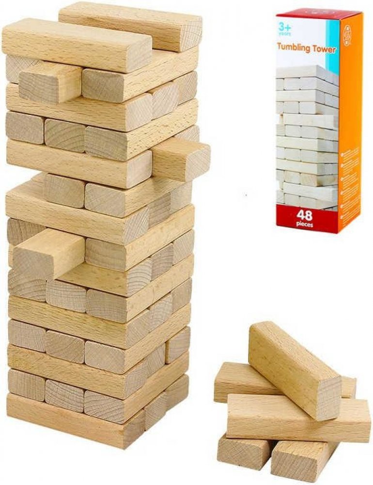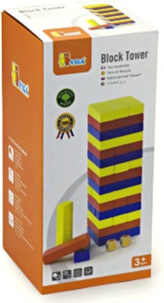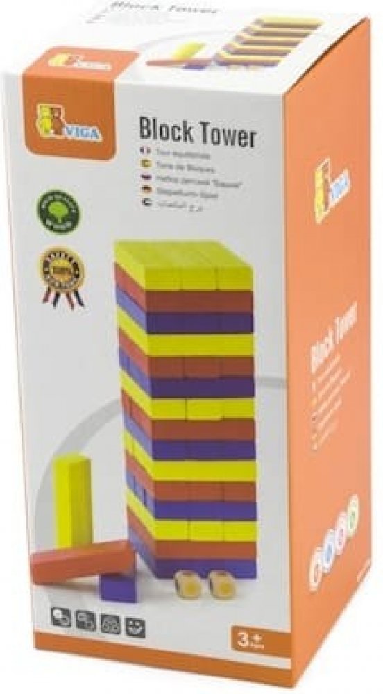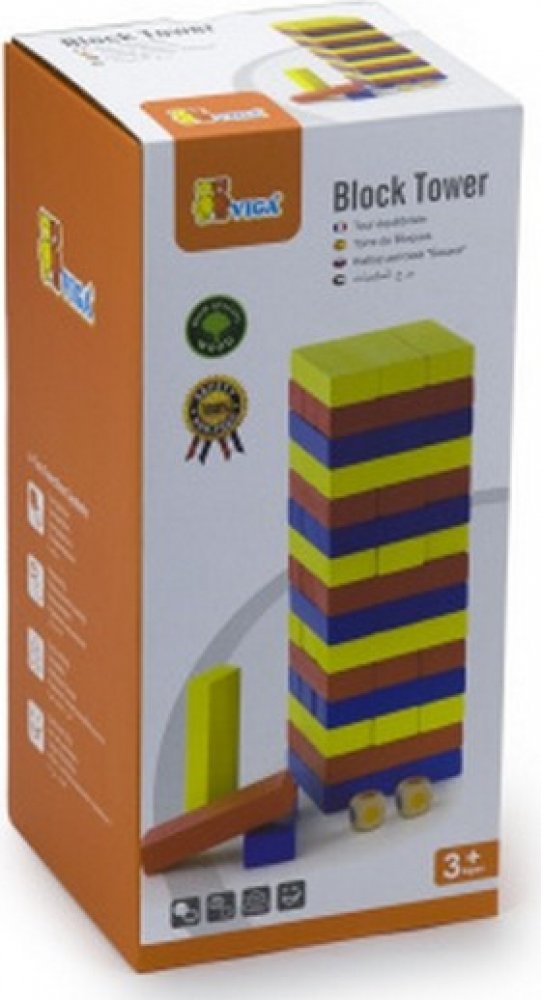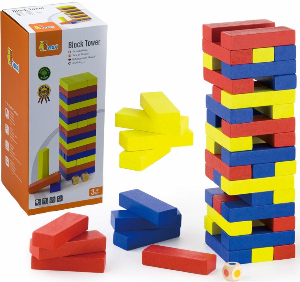 Oblíbená hra v nové barevné verzi od značky VIGA. Hra začíná postavením startovní věže z dřevěných kostek uprostřed stolu nebo podlahy. To zabere pár vteřin, protože hotová věž je zabalená v krabici, stačí ji jen opatrně vyjmout. Když máme startovní věž - každý hráč postupně odstraní jeden vybraný nebo nakreslený blok někde ze středu věže a položí ho na vrchol věže, čímž staví věž směrem vzhůru. C...