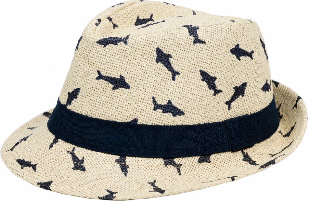 Pánský slaměný klobouk se širokým kontrastním páskem a s potiskem žraloků vynosíte nejen u moře. Na pláži ochrání před palčivým sluncem a na procházce po městě vám dodá vzhled neodolatelného frajera. Přibalte ho s sebou do kufru - díky pevnému materiálu si slamák zachová svůj tvar i po vybalení.