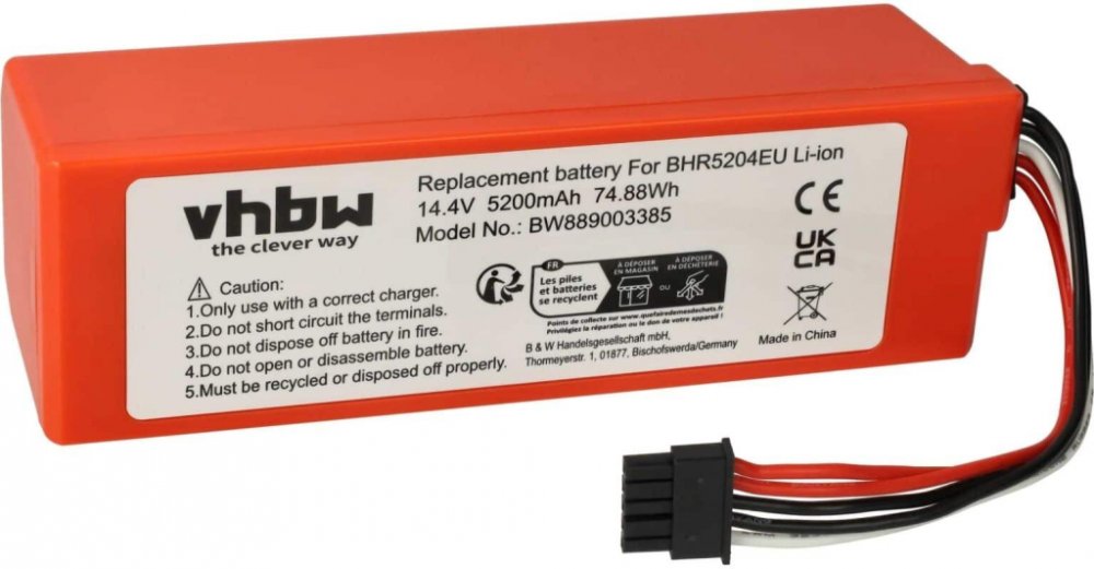 - Náhradní baterie je vyrobena podle designu a technologie německého výrobce VHBW, což zaručuje vynikající kvalitu