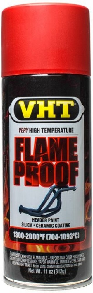 Barva ve spreji VHT Flameproof červená je žáruvzdornou barvou, která obnovuje a prodlužuje životnost povrchů, jež jsou vystaveny vysokým teplotám. Nejčastěji se používá v automobilovém průmyslu pro nalakování bloku či hlavy motoru, výfukových svodů a dalších částí vystaveným teplotám až 1093 °C. Barva se také užívá v leteckém průmyslu. Jedná se o matnou barvu, která má teplotní odolnost až do 704-...