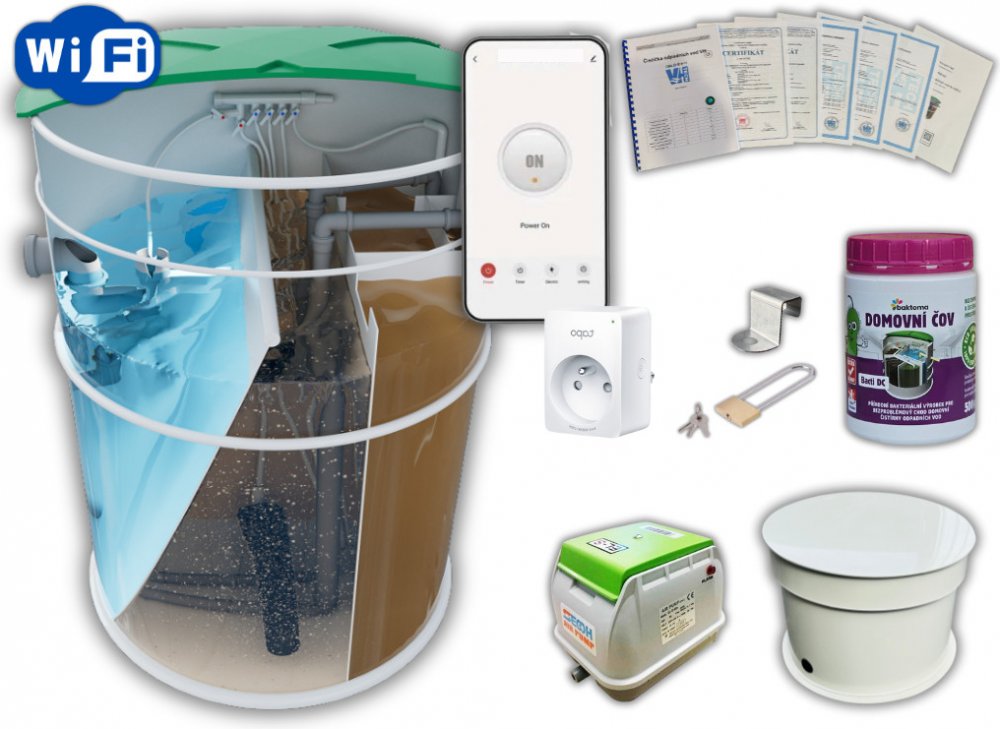 - kompletní technická dokumentace k ČOV ( CE certifikát, návody na obsluhu, Provozní řád čističky, atesty,atd.)
