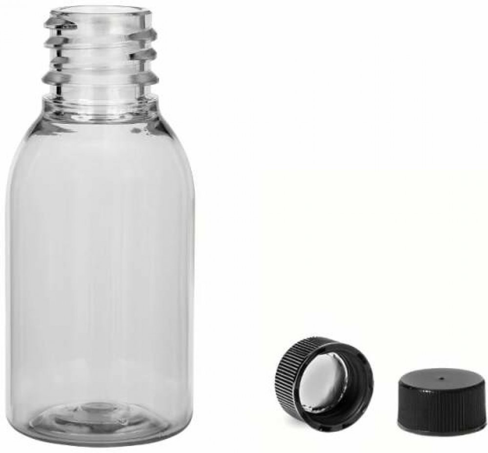 Via Plastová lahvička čirá široká s černým uzávěrem 25 ml