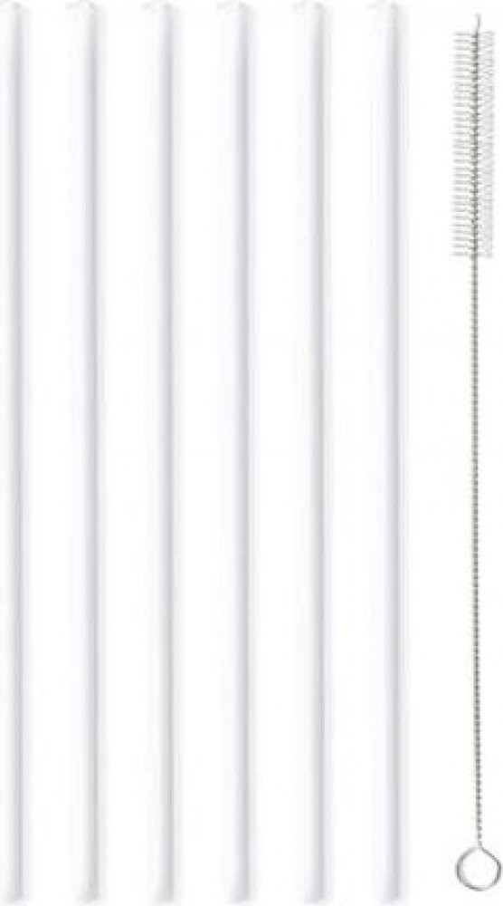 Vialli Design Skleněné brčko bílé, rovné 200 mm, 6 ks + kartáček, 6612