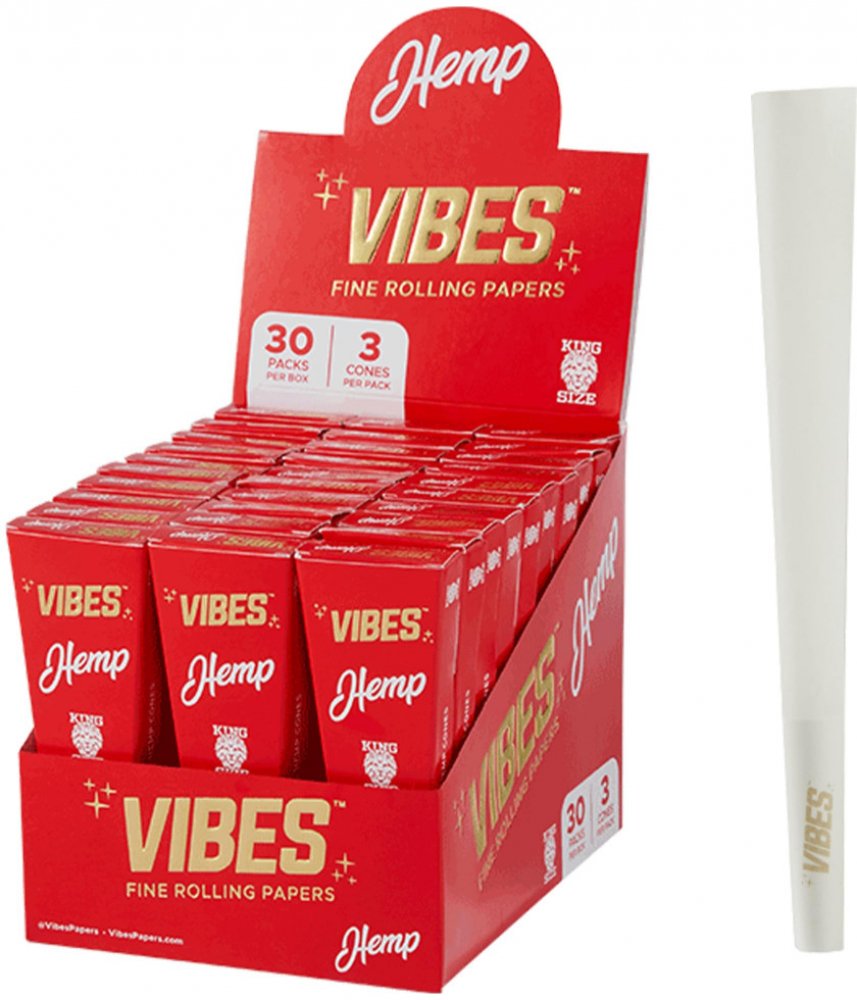 Vibes Hemp Kingsize Slim dutinky jsou prémiové předbalené dutinky vyrobené z přírodního konopného papíru. Díky své velikosti pojmou až 1 gram sušených bylin a zajišťují pomalé a rovnoměrné hoření. Balení obsahuje 3 kusy. Počet kusů v balení: 3 ks Dle zákona o nutnosti ověření plnoletosti je toto zboží zasíláno pouze prostřednictvím PPL nebo Zásilkovny s ověřením věku 18+.