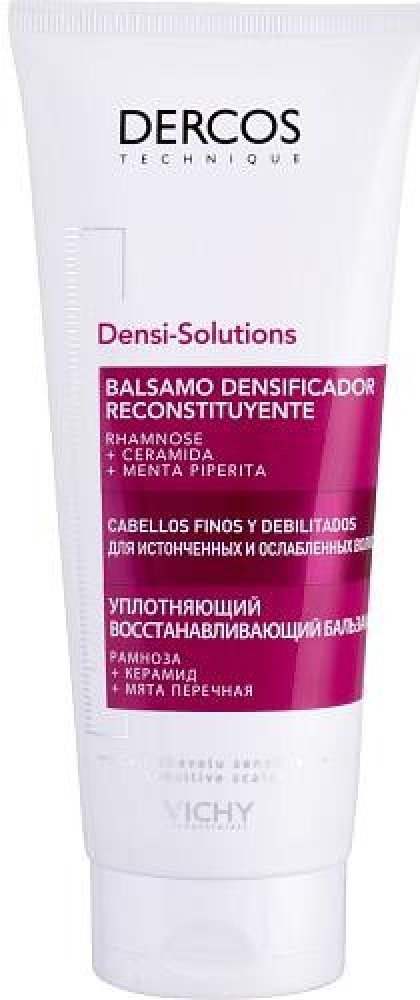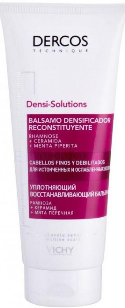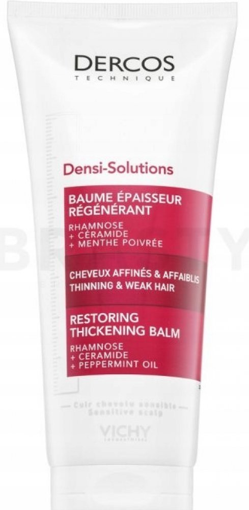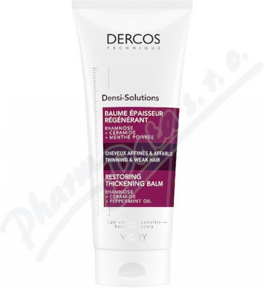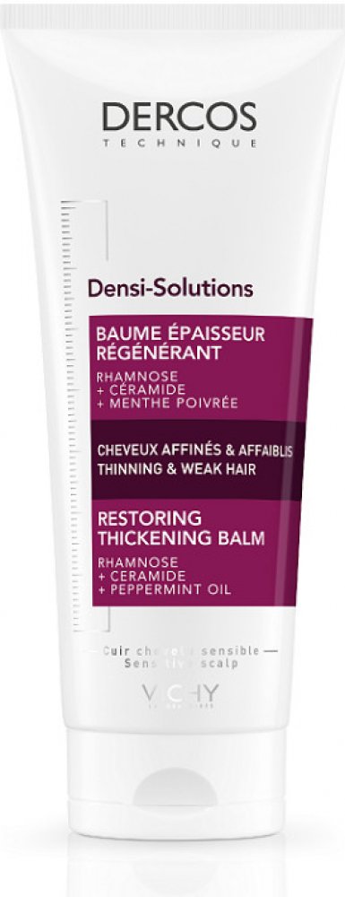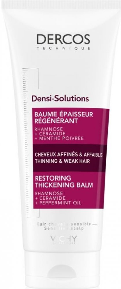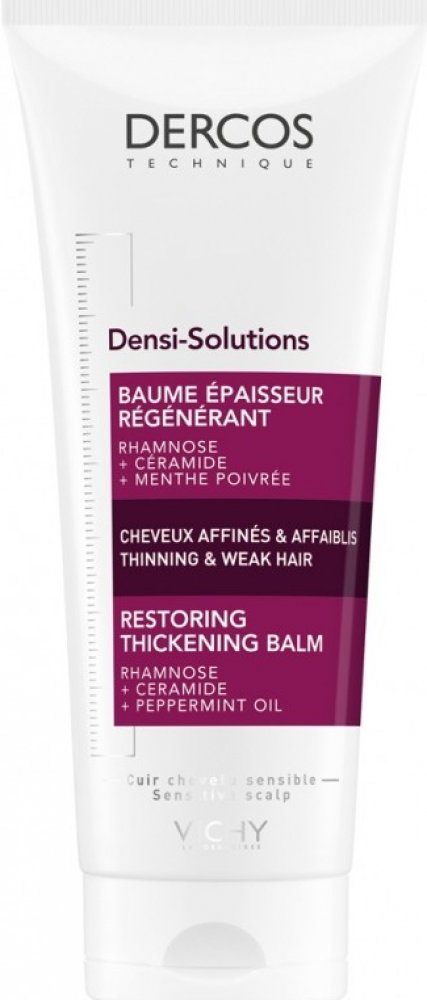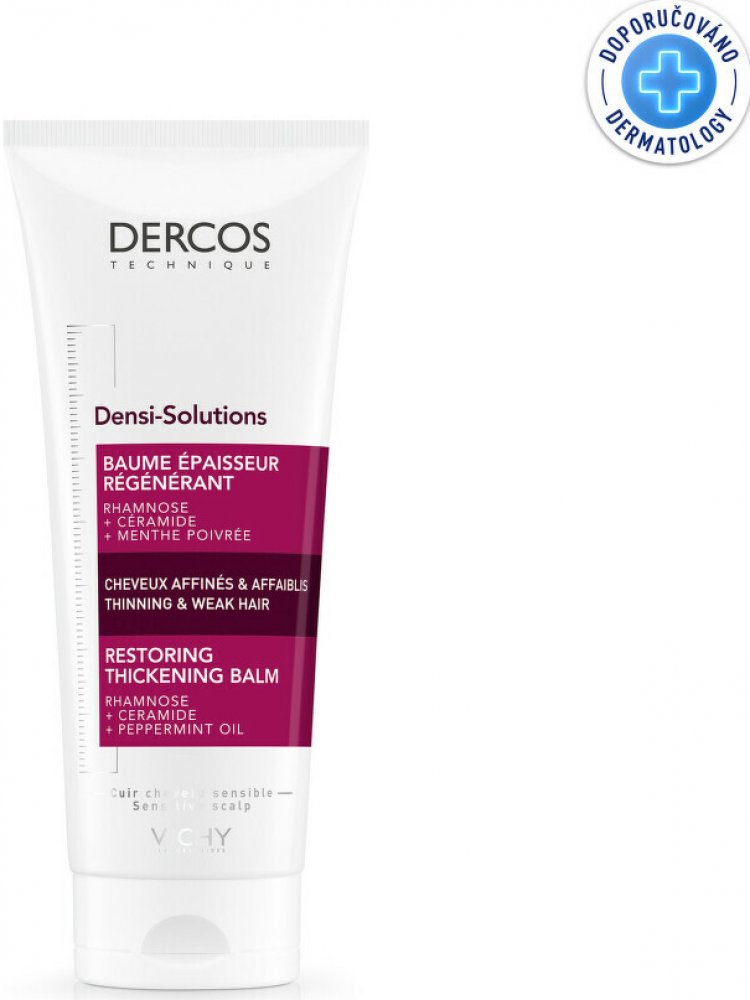 DERCOS DENSI-SOLUTIONS Regenerační zhušťující balzám působí na vlasovou pokožku, hydratuje ji a zlepšuje její kvalitu. Zároveň působí na vlasové vlákno a obnovuje ho pro silnější, hustší a zdravě vypadající vlasy.