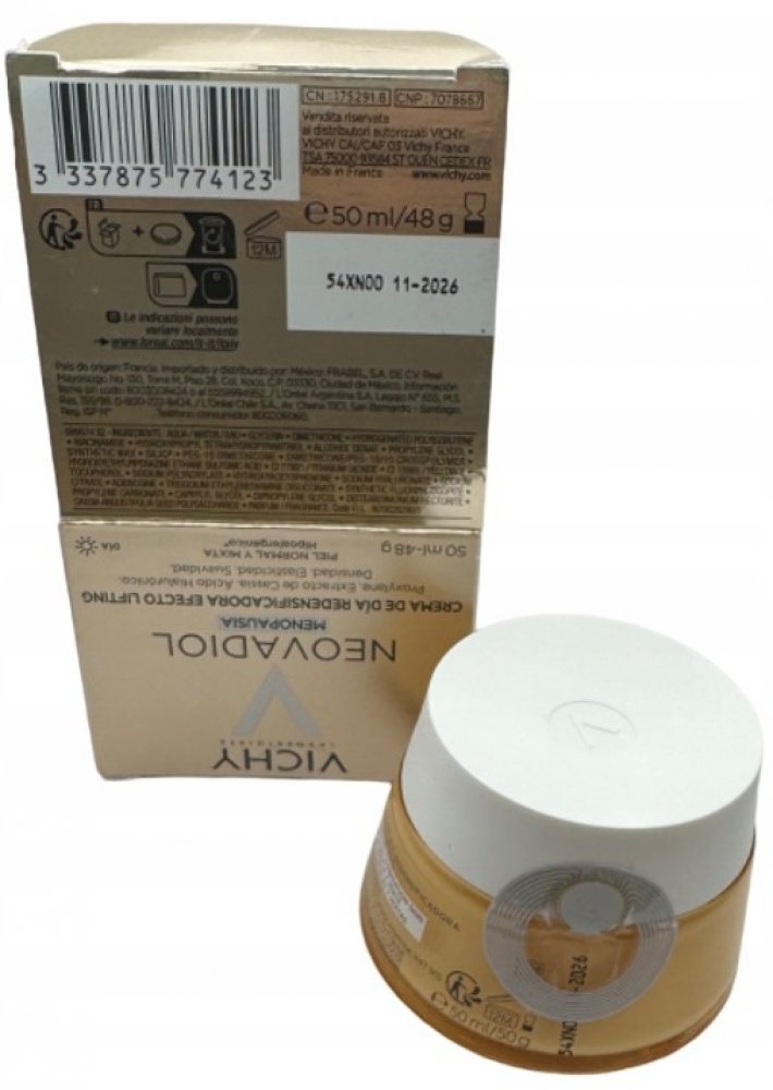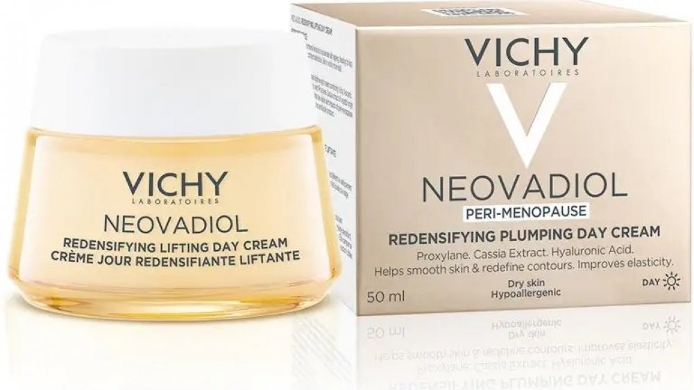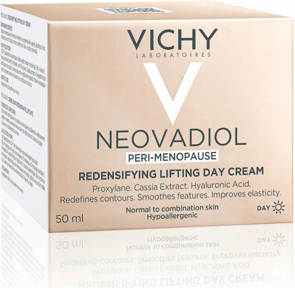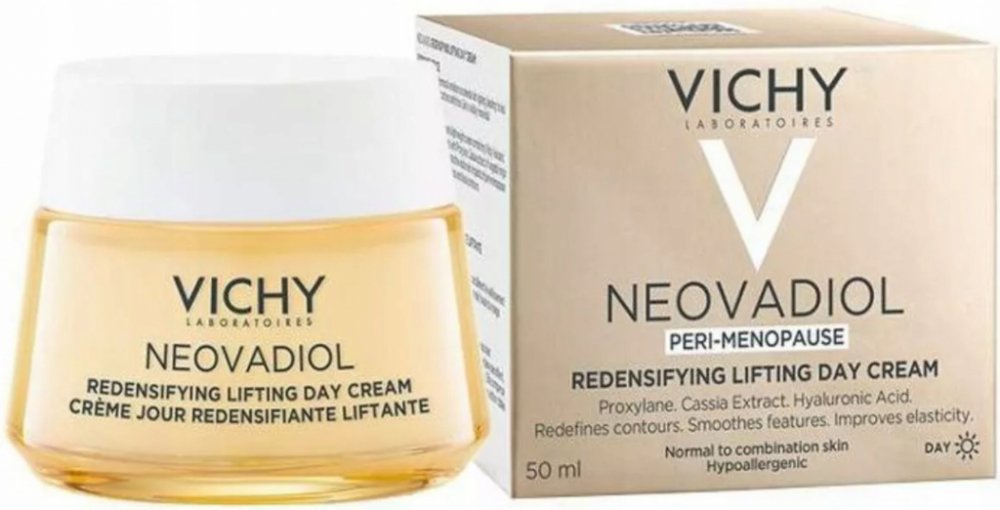Hormonální změny v období kolem menopauzy urychlují stárnutí pleti, která ztrácí elasticitu a hutnost. Kontury jsou méně vyrýsované. Laboratoře Vichy vyvinuly lehký krém s obsahem Termální vody Vichy vulkanického původu obohacené o 15 minerálů, Proxylanu, výtažku z kasie a kyseliny hyaluronové. Krém dodává pleti hydrataci, vyplňuje a zpevňuje ji a redukuje jemné linky a vrásky.