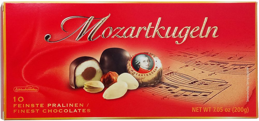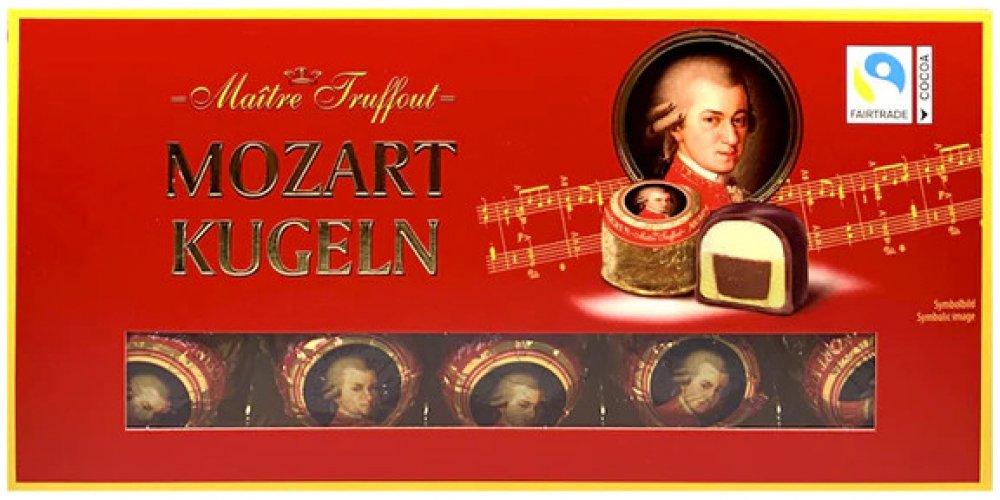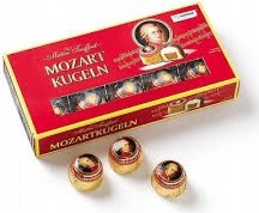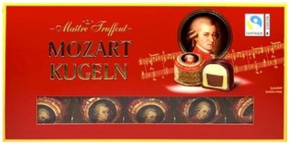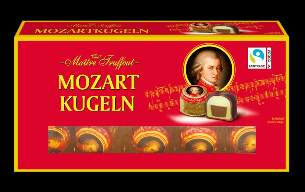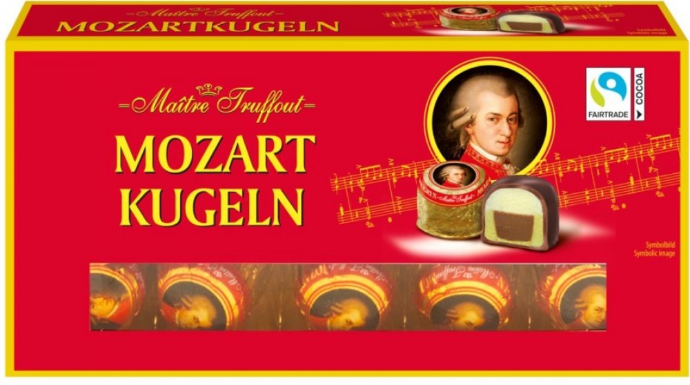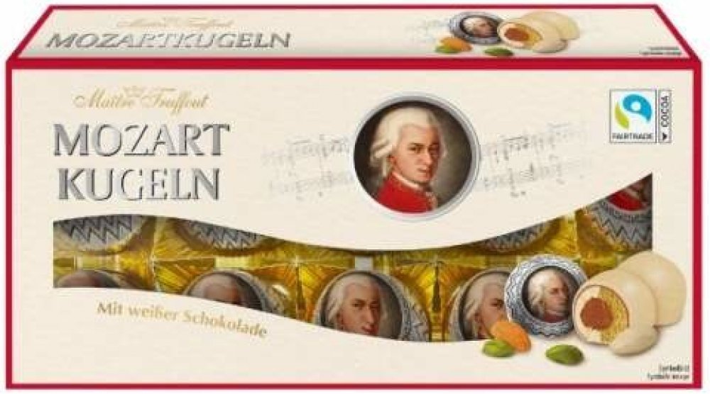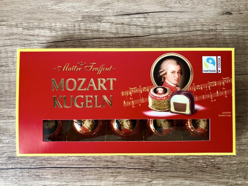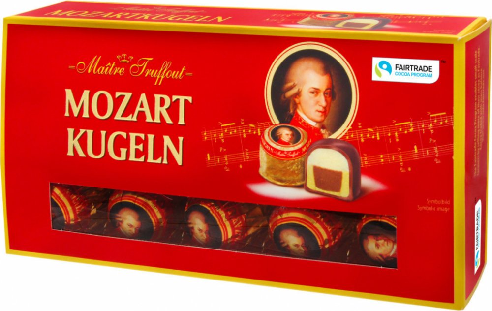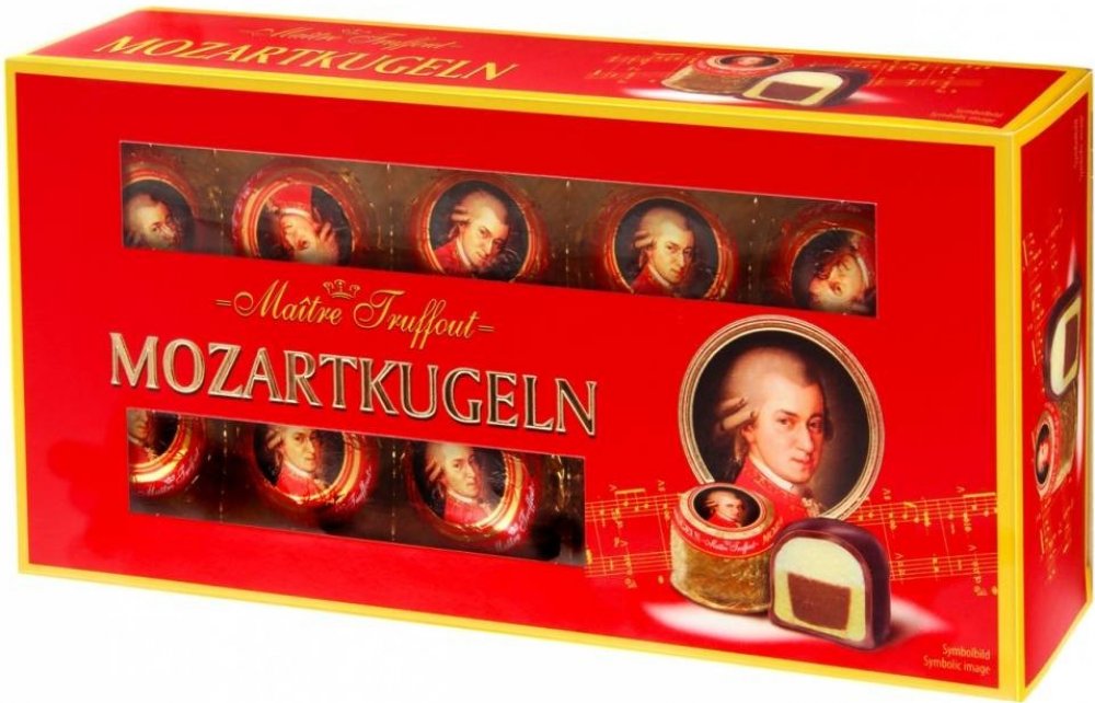 Kulaté pokušení - Mozartovy koule od Maître Truffout. Pralinky plněné jemným pistáciovým a marcipánovým krémem, perfektní jako dárek.