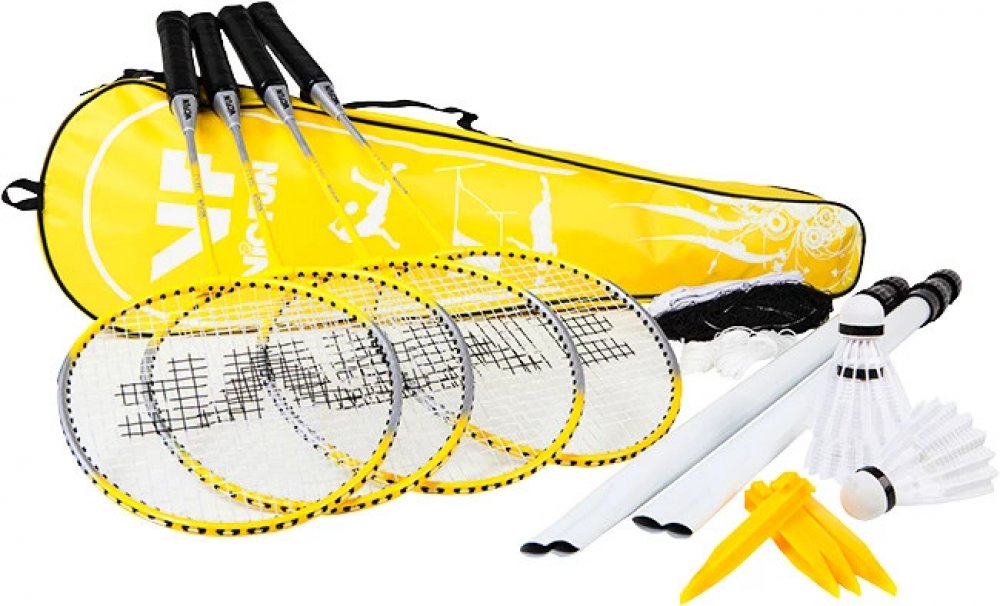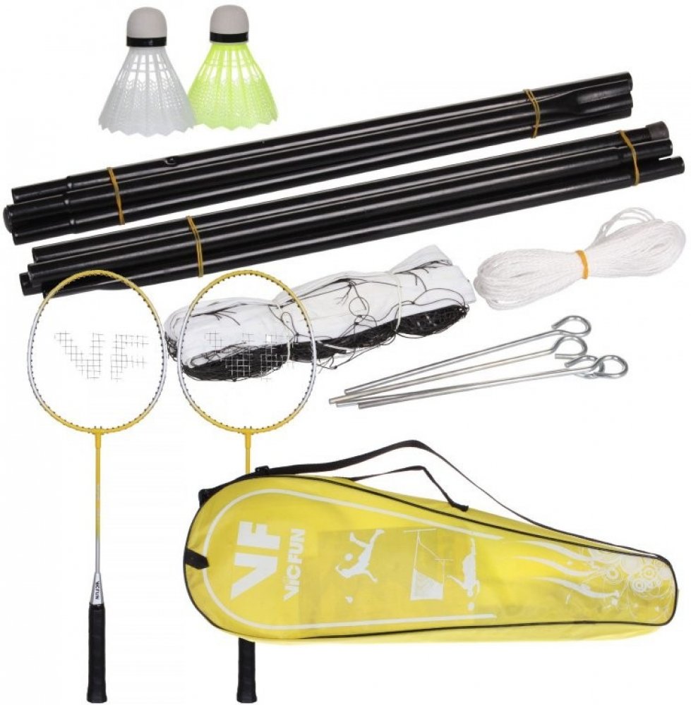 Badmintonová sada VicFun Set A je ideální volba pro hobby hráče, kteří si chtějí každou svojí volnou chvilku zpříjemnit badmintonem. Sadu VicFun Set A Complete tvoří čtyři téměř nezničitelné rakety z kalené oceli, dva nylonové košíčky s pěnovou hlavičkou, síť, výškově nastavitelná konstrukce a upevňující šňůry s kolíky. Celá sada je zabalena v praktickém přenosném obalu s popruhem přes rameno.