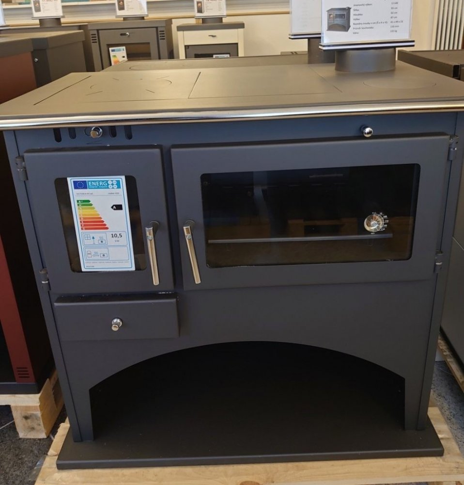 Victoria černé dřevo a dřevěné brikety pravé 405 x 490 x 215 mm 122 kg 87.4 cm 93 cm 62 cm ocelové 10.5 kW 74 % s troubou 150 mm horní