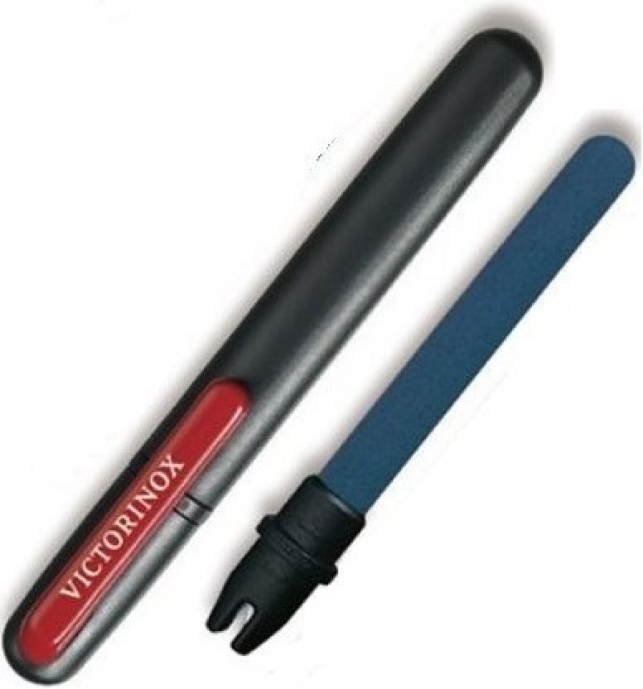 Malá a kompaktní bruska Victorinox pro každodenní použití pro všechny druhy čepelí, na kapesní nože. Má velikost plnicího pera - obsahuje brusný kámen a obtahovací kameny na docílení správného úhlu ostří. Vyrobená z keramiky. Při broušení natočte hřbet nože směrem ven tak, aby brusný úhel dosahoval velikost přibližně 20 stupňů. Řezné ostří po obou stranách s jistotou několikrát přetáhněte přes bro...