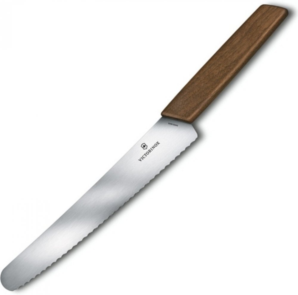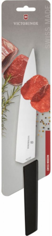 Řada nožů Victorinox Swiss Modern nabízí kromě působivého výkonu i vizuální potěšení, díky čemuž povznese vaše vaření na novou úroveň. Nože jsou vyrobeny z kvalitní nerezové oceli, jsou vysoce odolné vůči opotřebení a precizně nabroušená čepel umožňuje snadné řezání i těch nejmenších kousků. Luxusně vypadající tmavá rukojeť je z výběrového dřeva z vlašského ořechu, takže je velmi pevná a má krásnou strukturu. Bezpečné a stylové ukládání nožů Swiss Modern pak zabezpečí atraktivní nožový blok ze stejné série.