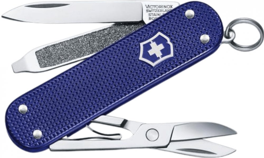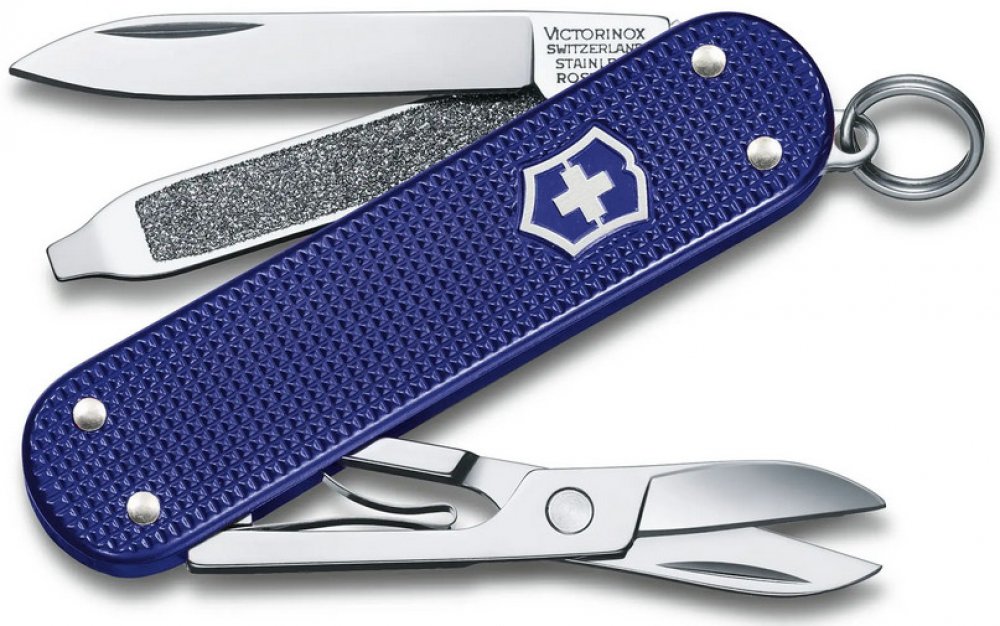 Victorinox zavírací 40 mm 98 mm 6 mm 17 g 5.8 cm nerezová ocel pro jemnou práci (≤ 7 cm) do běžně velké kapsy pomalé otevření hliník, plast s vysokou odolností proti vlhkosti 5 s otvorem pro nehet s hladkým ostřím
