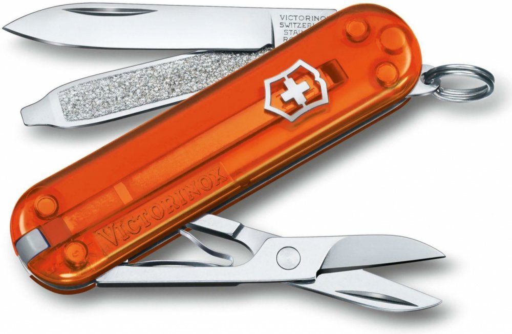 Kapesní mini nůž / klíčenka Victorinox Classic SD 58 mm, transparentní, oranžový, Fire Opal