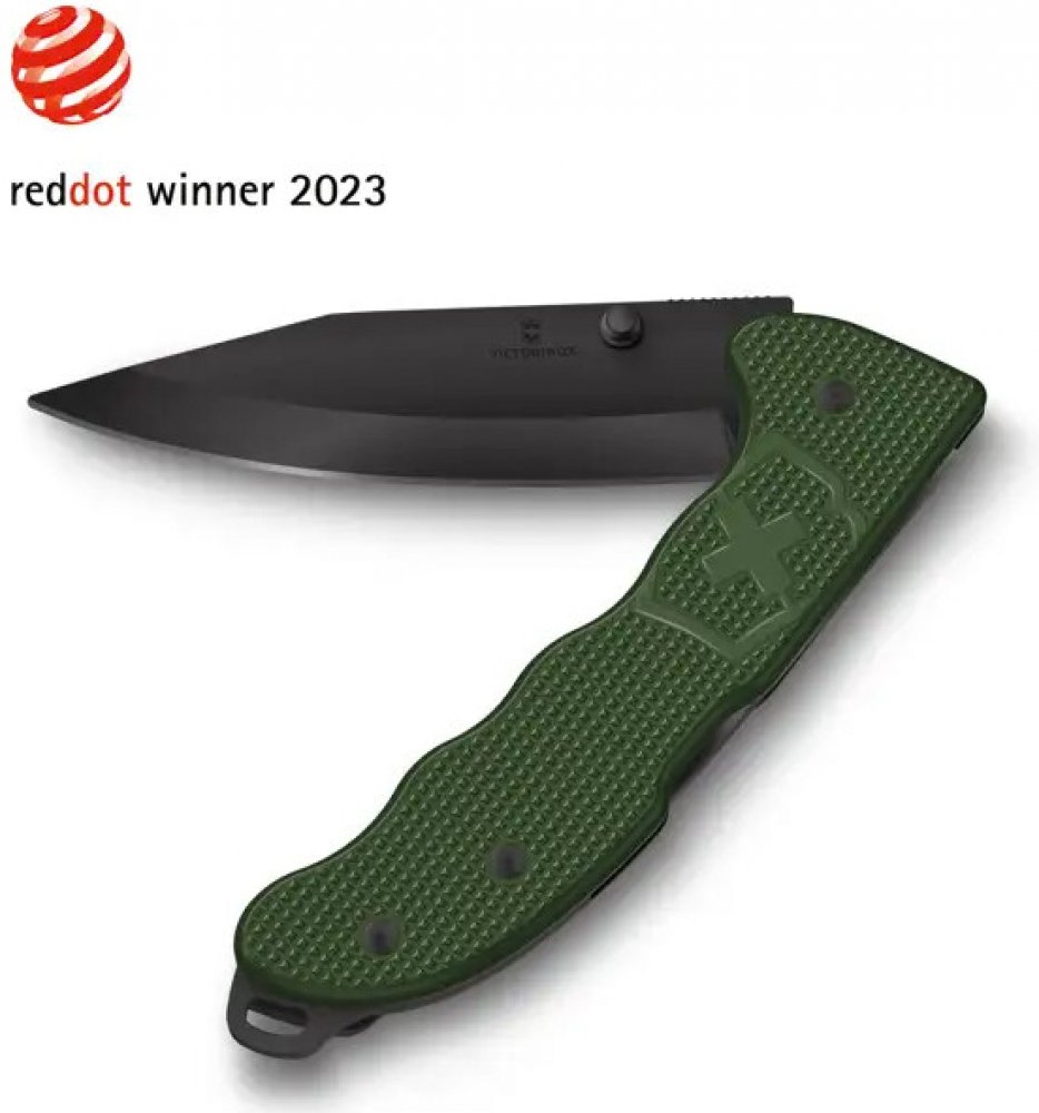 Victorinox Evoke BS Alox Olive Green je univerzální nůž s velkou sklopnou čepelí s černou povrchovou úpravou. Jeho klíčovými vlastnostmi jsou funkčnost, jednoduchost a styl. Čepel nože je vybavena odnímatelným kolíčkem, který umožňuje pohodlné otevření nože jednou rukou pravákům i levákům. Díky odolným aloxovaným střenkám má nůž velmi úzký profil a v kapse tak i přes svou velikost nepřekáží. Odnímatelný černý klip usnadní nošení nože a zajistí, že nůž bude vždy po ruce. Otvor pro šnůrku je připraven na ozdobu ve vašem stylu.