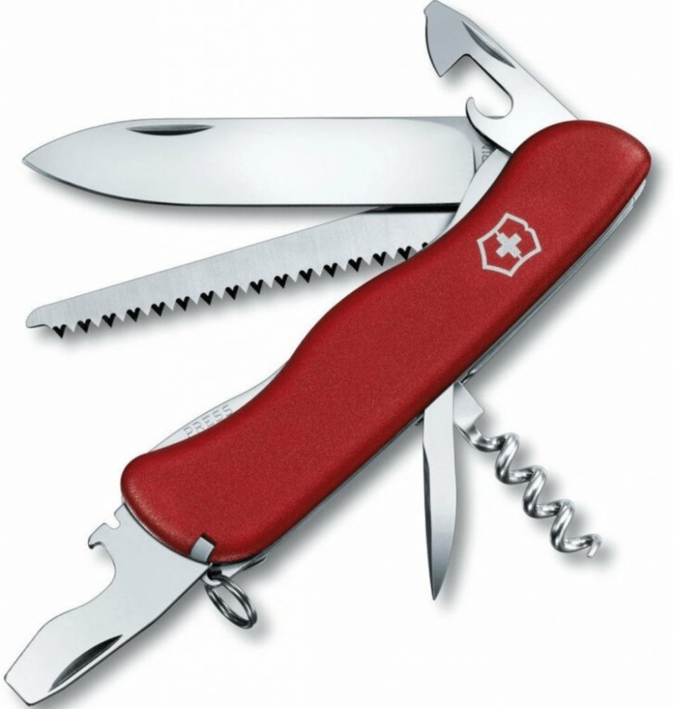 Kapesní multifunkční nůž Victorinox Forester Red 0.8363.B1 pro nadšence lesnictví či na výlety a pobyt v přírodě. Ve velikosti 111 mm. V červené barvě. Baleno v blistru. Má 12 funkcí: velká uzavírací čepel vývrtka otvírák na konzervy s malým šroubovákem 3 mm otvírák na láhve se šroubovákem 7 mm as odstraňovačem izolace drátů pilka na dřevo děrovač, výstružník pinzeta párátko kroužek na klíče