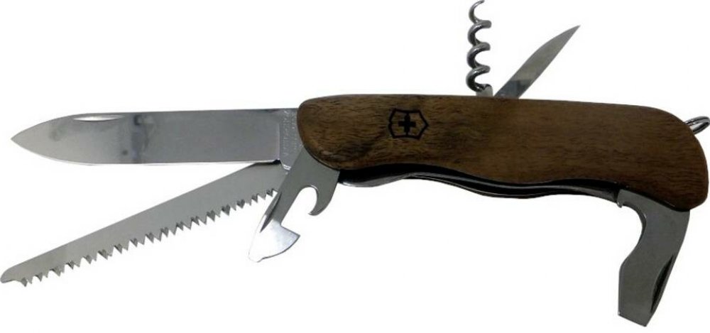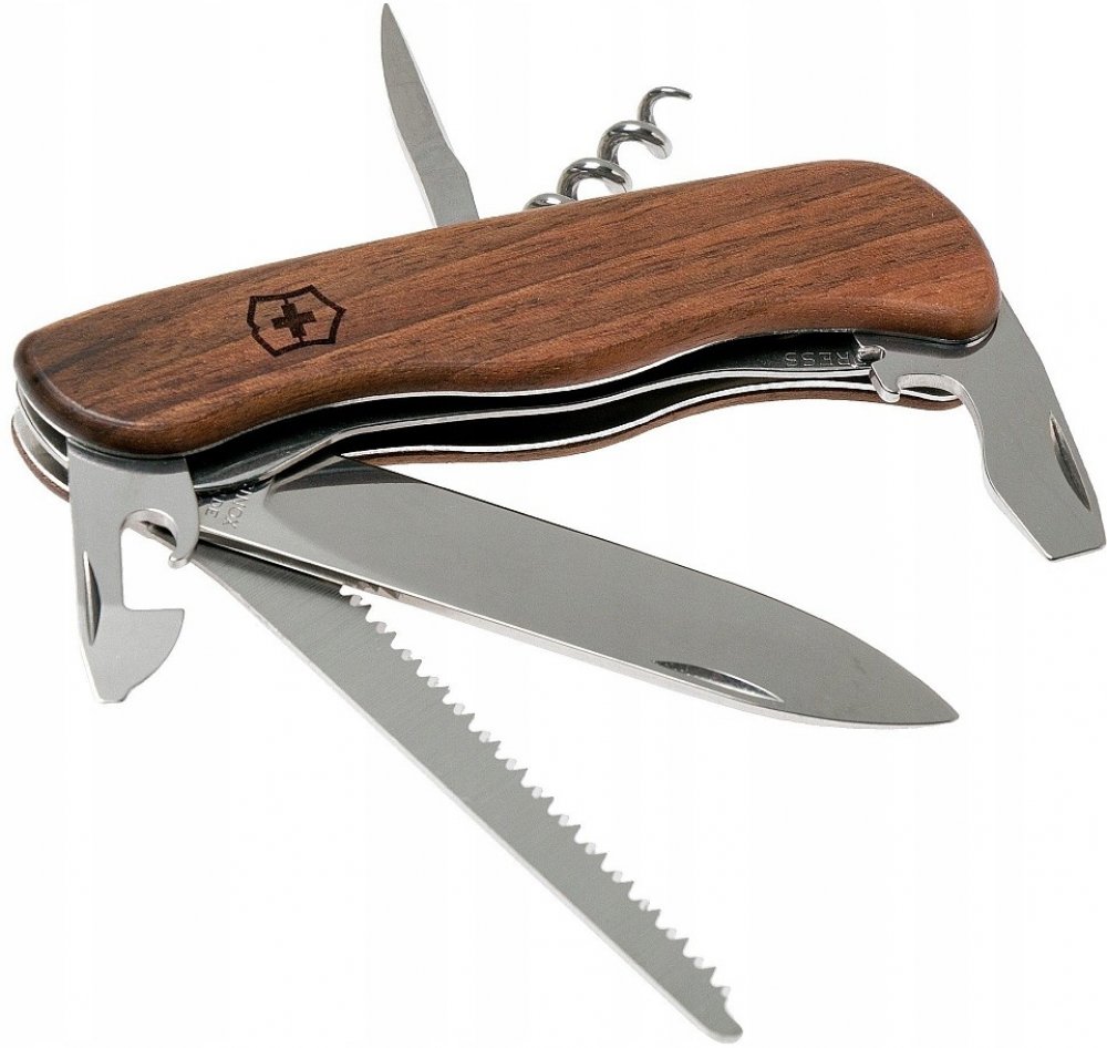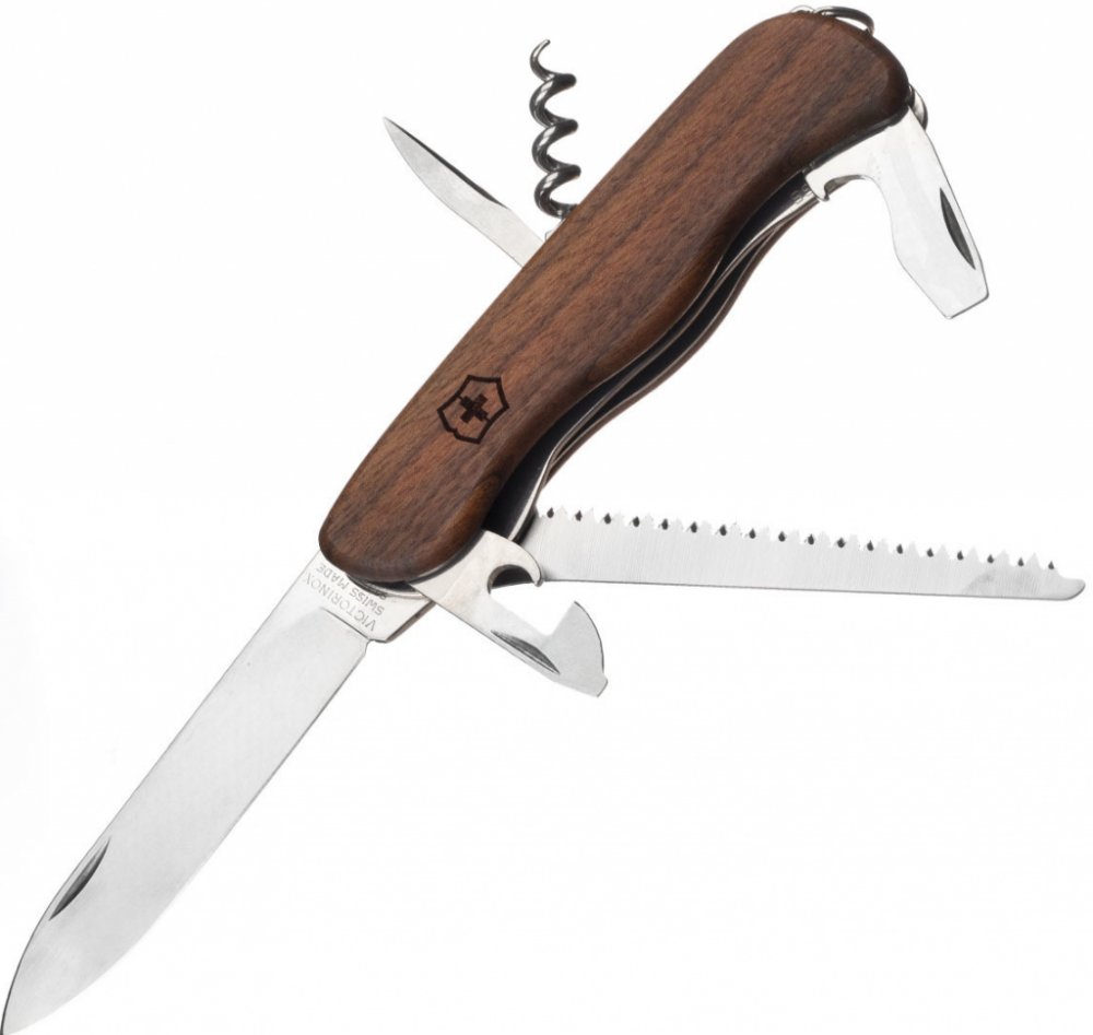 Victorinox zavírací 84 mm 195 mm 15 mm 126 g nerezová ocel pro každodenní použití (7–9 cm) do bundy nebo tašky pomalé otevření dřevo, ořechové dřevo s vysokou odolností proti vlhkosti 10 s otvorem pro nehet s hladkým ostřím