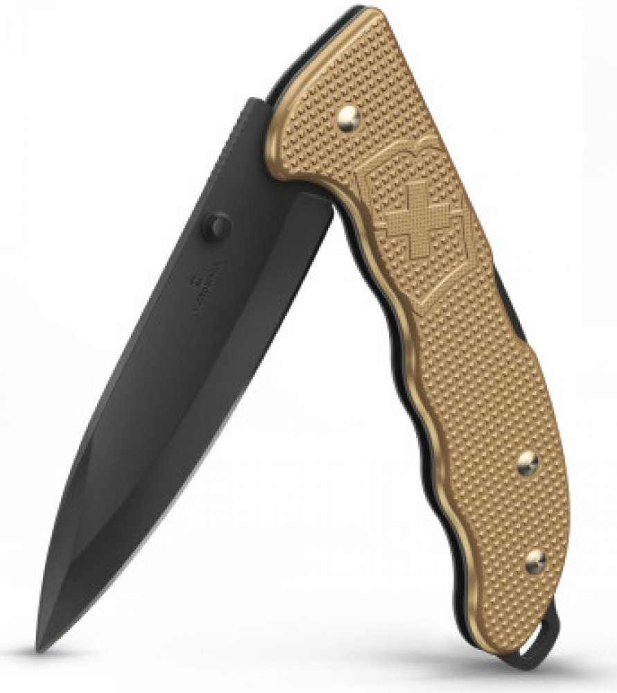 Victorinox Evoke BS Alox Beige je univerzální nůž s velkou sklopnou čepelí s černou povrchovou úpravou. Jeho klíčovými vlastnostmi jsou funkčnost, jednoduchost a styl. Čepel nože je vybavena odnímatelným kolíčkem, který umožňuje pohodlné otevření nože jednou rukou pravákům i levákům. Díky odolným aloxovaným střenkám má nůž velmi úzký profil a v kapse tak i přes svou velikost nepřekáží. Odnímatelný černý klip usnadní nošení nože a zajistí, že nůž bude vždy po ruce. Otvor pro šnůrku je připraven na ozdobu ve vašem stylu.
