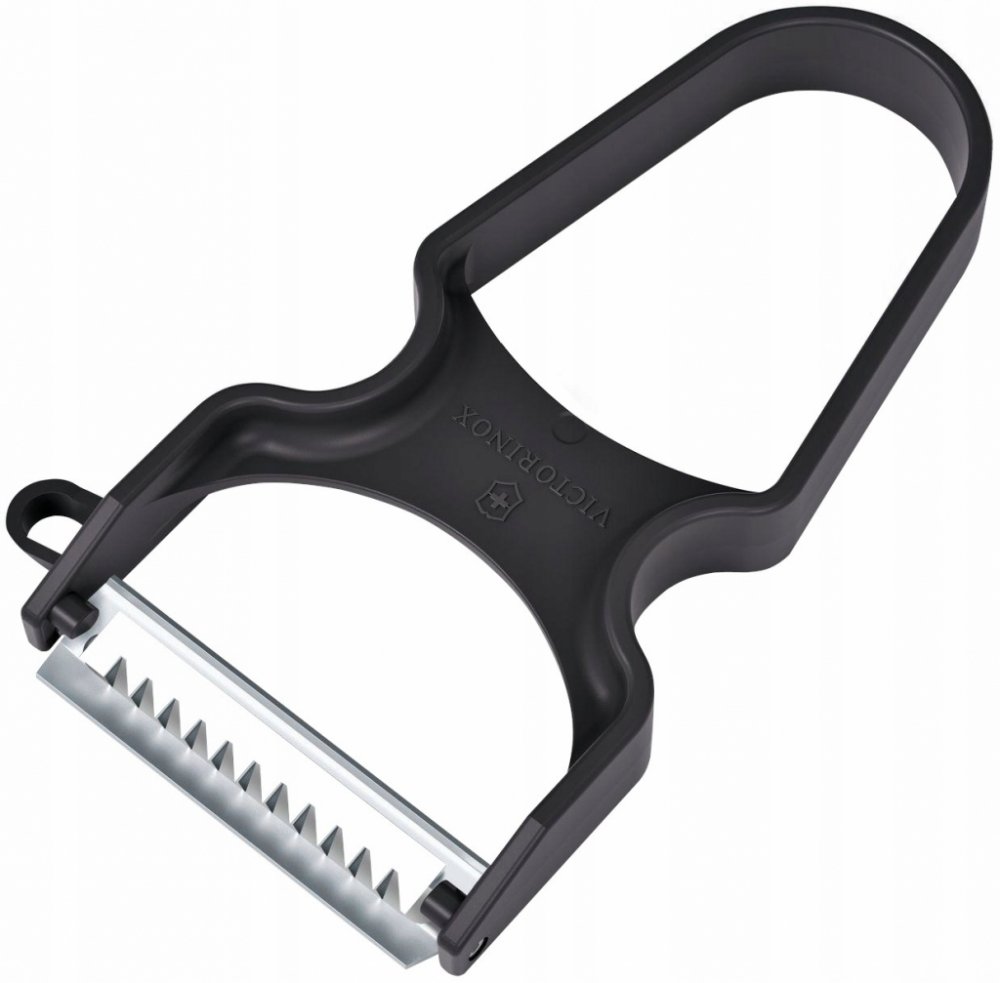 Škrabka Victorinox Julienne v černé barvě – precizní švýcarský nástroj, který zvládá nejen loupání, ale i rychlou tvorbu zeleninových nudliček. Díky ostří typu Julienne vytvoří z mrkve, cukety i okurky elegantní proužky během několika málo tahů. Ostrá výkyvná čepel z nerezové oceli přechází v ergonomickou rukojeť z odolného plastu, která perfektně padne do ruky. Boční očko usnadní odstranění kazů. Kombinace vysoké účinnosti, lehkosti a snadného čištění z ní činí ideální volbu i pro každodenní použití. Lze mýt v myčce. Kompaktní rozměry a dlouhá životnost – přesně to, co očekáváte od značky Victorinox.