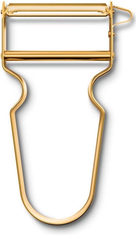 Kvalitní škrabka na brambory s ostřím z pozlacené nerezové oceli si poradí i s tvrdšími druhy zeleniny a ovoce.