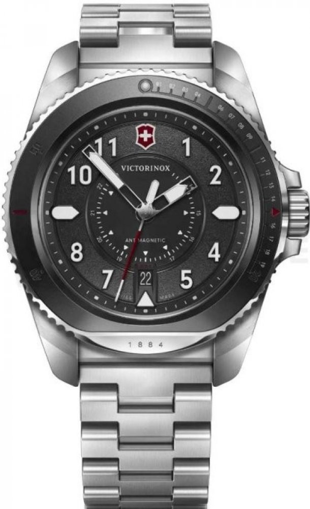 Victorinox analogové ocel ocel 200 m bateriové 200.0 g safírové sportovní pánské bateriové - quartz bez osazení Journey 1884 kulaté stříbrná černá motýlková spona 2.1 cm pro potápění (100+ m) s trvalým svícením (tritium/Super-LumiNova) s nenáročnou údržbou (quartz) bez chytrých funkcí na ruku švýcarské s arabskými číslicemi stříbrná ocel 4.3 cm střední jednosměrně otočná 12.0 mm 21.0 mm 12 mm 43 mm 43.0 mm se superluminou