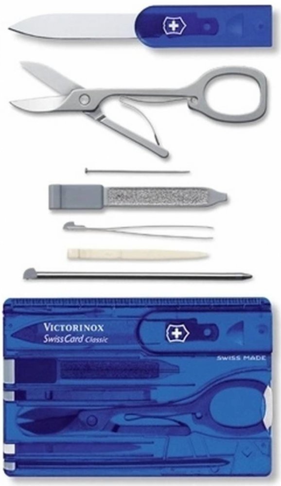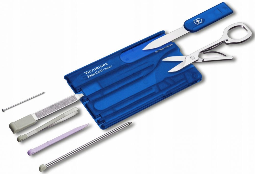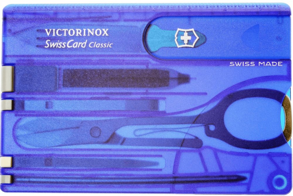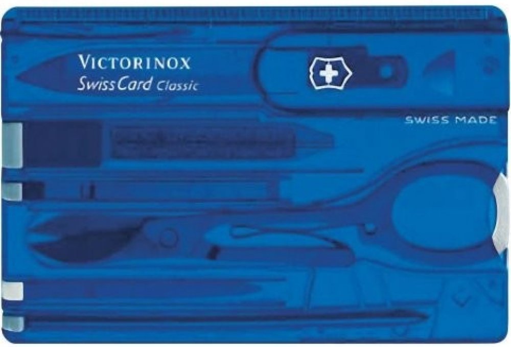 Swiss Card Classic Victorinox 0.7122.T2 Modrá je elegantní a zároveň maximálně praktický nástroj, který svým kompaktním rozměrem 82x55x4 mm snadno padne do peněženky či kapsy. V atraktivním modrém provedení nabízí uživatelům širokou škálu funkcí, které oceníte v každodenních situacích i na cestách.