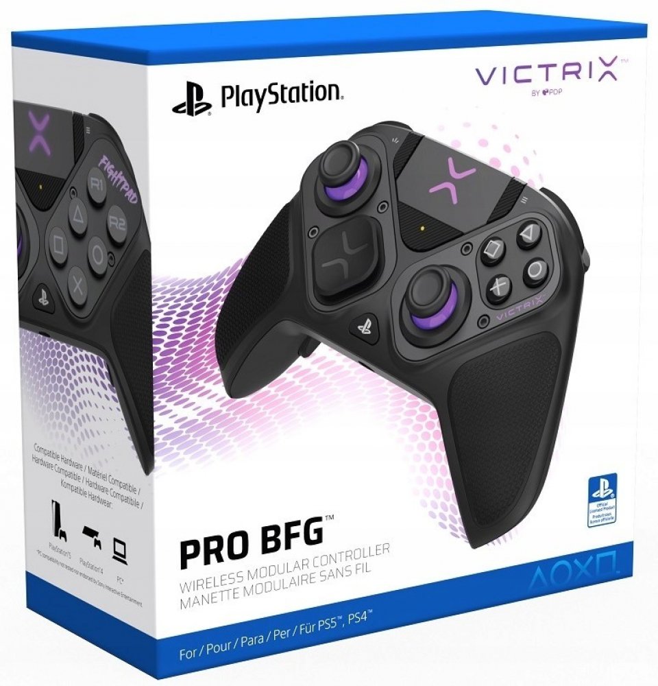 Bezdrátový herní ovladač PDP Victrix Pro BFG je určen pro konzole PS5/PS4 a PC. Nabízí široké možnosti přizpůsobení, včetně plně modulárního designu a čtyř programovatelných zadních tlačítek. Ovladač lze připojit bezdrátově pomocí USB dongle nebo drátově pomocí 3m USB-C kabelu.