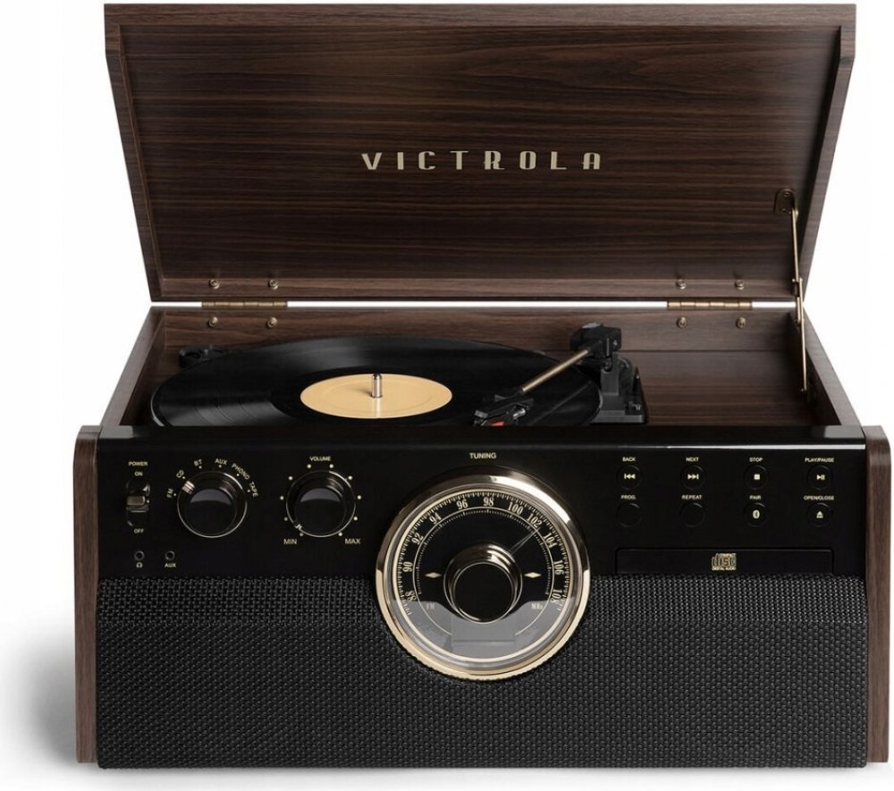 Gramofon Victrola VTA-270B je díky vestavěnému reproduktoru a modernímu designu 20. století ideální pro milovníky vinylu. Streamujte hudbu přes Bluetooth nebo přehrávejte své oblíbené melodie pomocí FM rádia, CD nebo kazetové mechaniky nebo prostřednictvím 3,5 mm audio vstupu! VTA-270B je vybaven analogovým rádiovým tunerem s nádherným LED podsvícením a zlatými prvky.