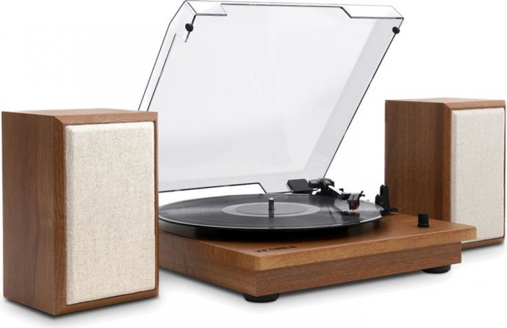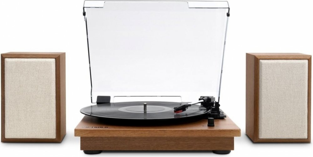 Victrola Montauk Turntable System je univerzální řešení pro milovníky vinylu i moderní posluchače. Spojuje klasický design gramofonu s praktickými bezdrátovými funkcemi a nabízí všestranný zážitek z poslechu.Klíčové vlastnosti:Gramofon s třemi rychlostmi: Přehrává desky s rychlostmi 33 1/3, 45 a 78 otáček za minutu, což umožňuje přehrávání široké škály vinylových kolekcí.Řemínkový pohon: Zajišťuje plynulé a přesné přehrávání s minimální údržbou.Vestavěné reproduktory: Obsahuje pár reproduktorů laděných na míru pro skutečný stereo zvukový zážitek.Bluetooth připojení: Umožňuje bezdrátový přenos hudby z chytrého zařízení do reproduktorů.RCA výstup: Připojení k externím reproduktorům nebo audio systémům pro vylepšenou kvalitu zvuku.Odnímatelný kryt proti prachu: Chrání vaše desky před prachem a škrábanci, když se nepoužívají.Přírodní dřevěný povrch: Elegantní přírodní dřevěný povrch, který se hodí do každého poslechového prostoru.Rozměry: 34 cm x 10 cm x 32 cmHmotnost: 1,8 kgVictrola Montauk Turntable System je navržen tak, aby přinesl to nejlepší z vintage i moderní zvukové technologie přímo do vašeho domova. Ať už si vychutnáváte své oblíbené vinylové desky nebo bezdrátově streamujete hudbu, tento systém poskytuje hladký a příjemný zážitek z poslechu.