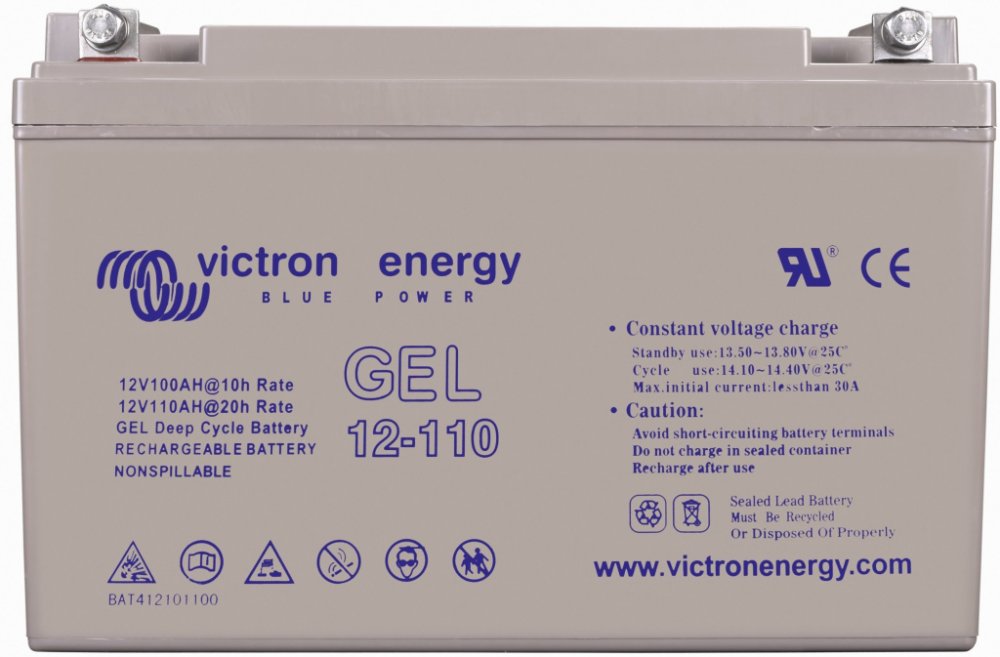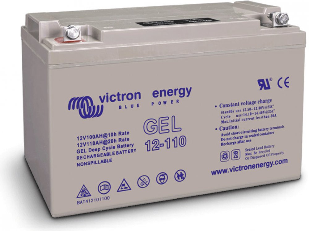 Olověná baterie Victron 110 Ah deep cycle VRLA GEL s pokročilou technologií vazby elektrolytu na křemičitý gel přináší řadu nesporných výhod oproti klasickým akumulátorem s tekutým elektrolytem. Těmi nejvýznamnějšími je absolutní bezúdržbovost po celou dobu životnosti, nízká míra samovybíjení, teplotní stabilita, vysoká odolnost hlubokému vybíjení a následné rychlé "zotavení", snížený vliv vibrací a mechanického poškození gelem fixovaných desek, nevrstvení elektrolytu se všemi negativy, možnost polohování baterie a nízká koroze elektrod a sulfatace.