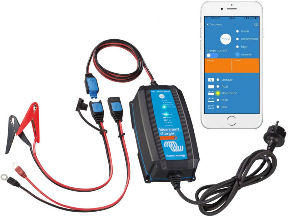 Nabíječka Blue Power Charger používá speciální nabíjecí algoritmus pro Li-ion (LiFePO4) baterie, s automatickým resetem ochrany podpětí Li-ion baterií.