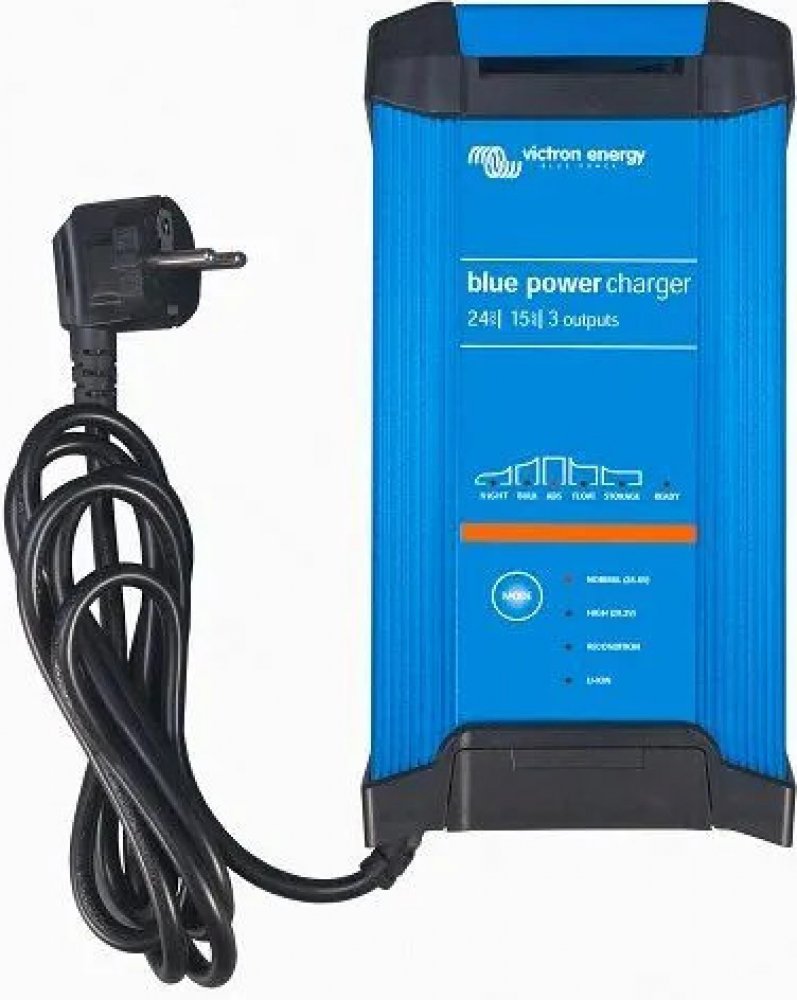 Nabíječka Blue Power Charger používá speciální nabíjecí algoritmus pro Li-ion (LiFePO4) baterie, s automatickým resetem ochrany podpětí Li-ion baterií.