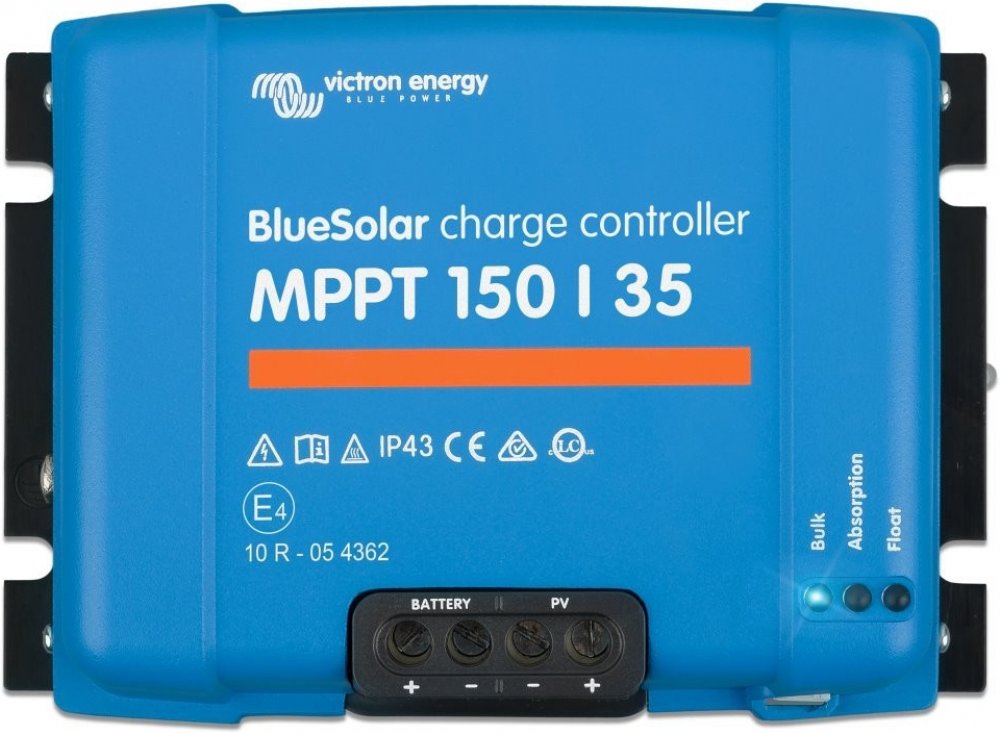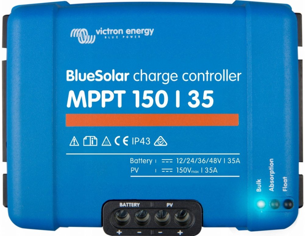 Robustní a rychlý MPPT regulátor pro náročné podmínky s napětím panelů až 150 V, maximální nabíjecí proud 35 A. Baterie 12/24/48 V, FV max. 500/1000/2000 Wp.
