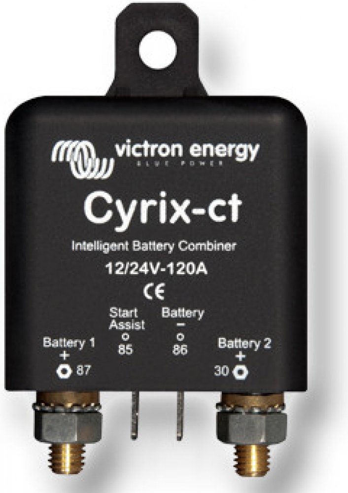Inteligentní propojovač baterií Cyrix-ct řídí nabíjení a odpojování dvou různých paralelně spojených baterií ( např. startovací a provozní baterie). Pokud je na jedné z baterií dosaženo napětí 13,0 V (26 V) po dobu 10 minut nebo 13,8 V (27,6 V) po dobu 4 sekund, propojí baterie a dochází k současnému nabíjení. Jakmile na jedné z baterií klesne napětí pod 12,8 V (25, 6) po dobu 10 minut nebo 11,8 (...