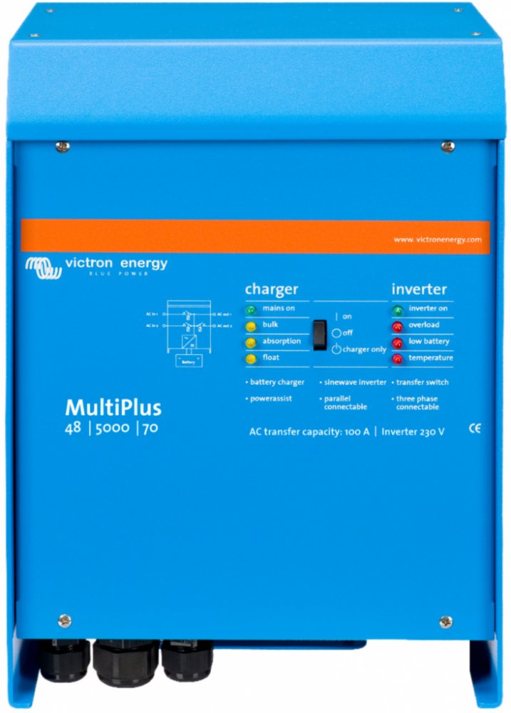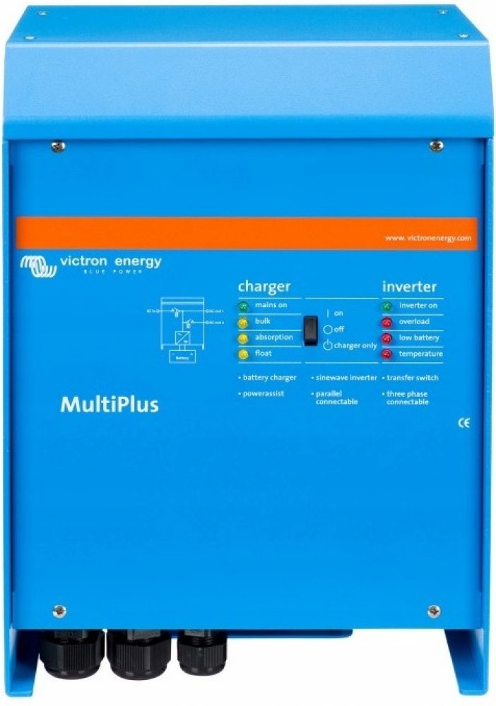MultiPlus jak napovídá název, je kombinací střídače a nabíječky v jednom elegantním balení. Jeho řada funkcí zahrnuje čistě sinusový měnič, adaptivní nabíjení, hybridní technologii PowerAssist a další funkce pro integrace do různých typů systémů.