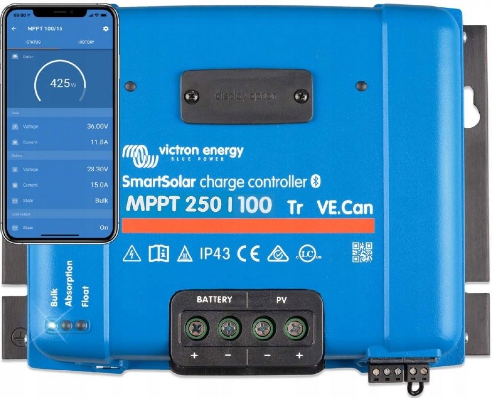 Nová řada MPPT regulátorů Victron Energy SmartSolar o výkonu 70A až 100A s bluetooth technologií pro monitoring na Váš smartphone, zásuvný displej, programovatelné relé a vzdálené spínání s nadstandardní zárukou 5 let.