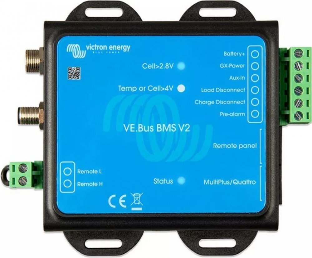 Systémy VE.Bus BMS a VE.Bus BMS V2 jsou systémy správy baterií (BMS) určené k vytvoření rozhraní a ochraně jedné nebo více lithiových baterií Lithium Battery Smart 12,8 V nebo 25,6 V (LiFePO4 nebo LFP) v systémech, které mají měniče nebo střídače/nabíječky Victron s komunikací VE.Bus. Monitoruje a chrání baterie před přepětím a podpětím kteréhokoli jednotlivého článku a také před nadměrnou teplotou nebo příliš nízkou teplotou. Na základě stavu baterie nebo baterií systém BMS: Vytvoří předběžný výstražný signál, který upozorní na hrozící stav podpětí článku. Vypne invertování ve střídačích VE.Bus nebo střídačích/nabíječkách přes sběrnici VE.Bus a v případě stavu podpětí článku zakáže ostatní zátěže přes svorku „Odpojení zátěže“. Vypne nabíjení v střídačích VE.Bus nebo střídačích/nabíječkách přes sběrnici VE.Bus a v případě stavu přepětí článku, nedostatečné teploty nebo nadměrné teploty vypne ostatní nabíječky přes svorku „Odpojení nabíjení“. „Původní“ systém VE.