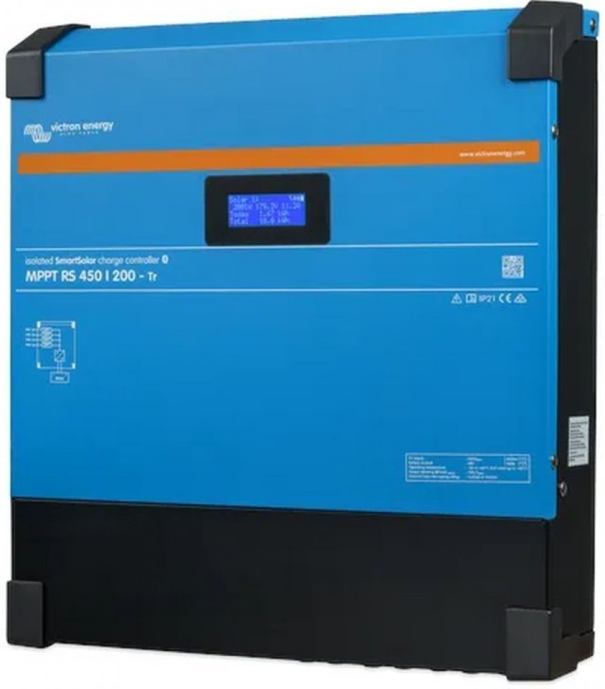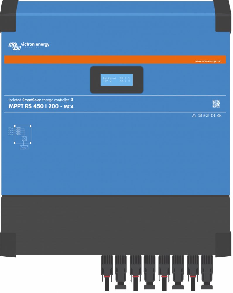 MPPT RS SmartSolar je 48 V solární regulátor nabíjení s až 450 V DC PV vstupem 200 A, s konektory MC4. Používá se v solárních aplikacích on-grid a off-grid, kde je požadovaný maximální nabíjecí výkon baterie.
