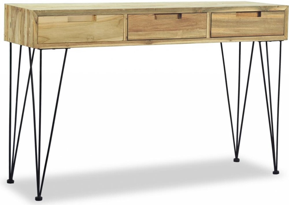 Stolek má pevnou desku z tvrdého dřeva, na kterou můžete vystavit dekorativní předměty, jako jsou mísy s ovocem či vázy. Do 3 zásuvek se pak vejdou veškeré drobnosti, které si chcete uschovat po ruce. Stolek navíc disponuje robustními nožkami z tepaného železa. Jeho montáž je také velmi snadná.