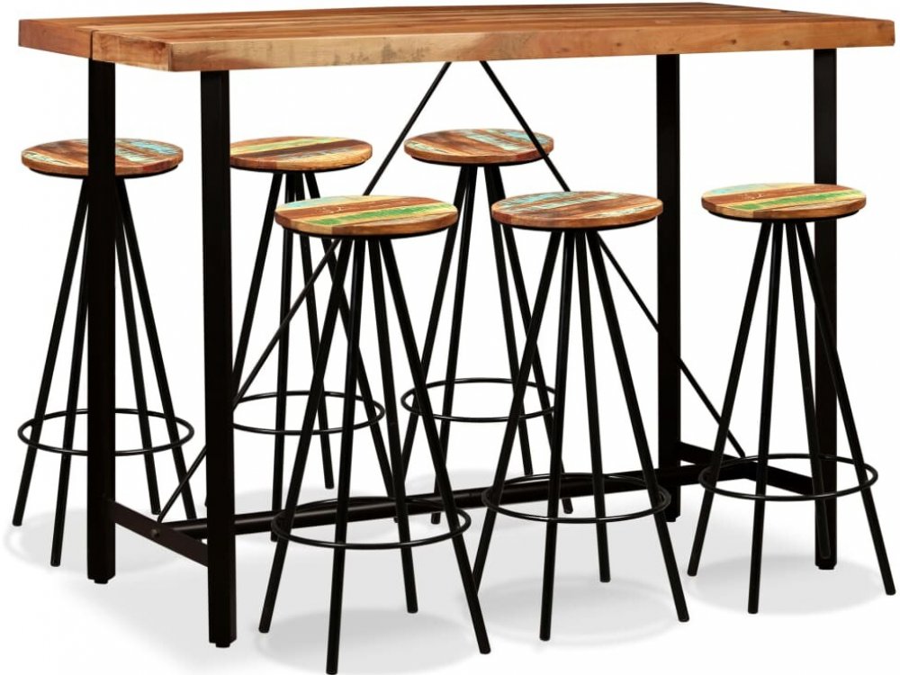 Balení obsahuje 1 barový stůl a 6 barových stoliček. Montáž je snadná. Důležité upozornění: Odstín a kresba dřeva se mohou lišit kus od kusu, díky čemuž je každý kus nábytku jedinečný a lehce odlišný od ostatních. Výběr kusu k dodání je náhodný.