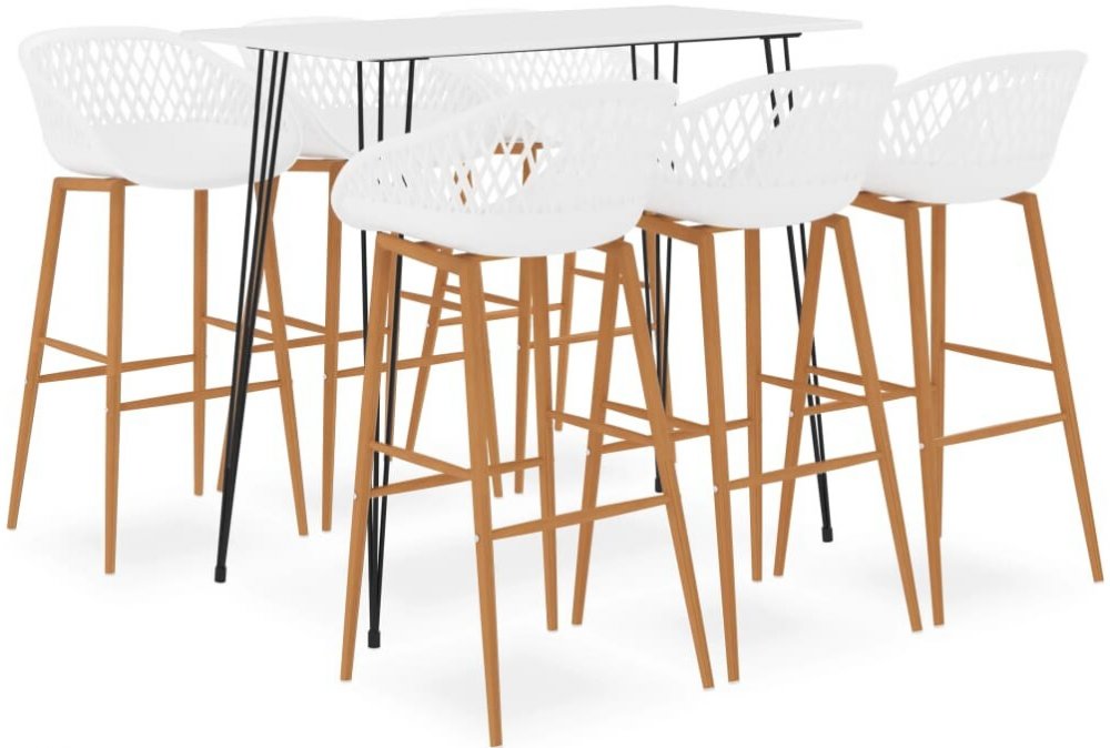 Stolní deska je zhotovená z MDF, takže se snadno čistí. Práškově lakovaný kovový rám přispívá k celkové stabilitě a odolnosti barového stolu. Barové stoličky mají ergonomicky tvarované sedáky s integrovaným nízkým opěradlem v síťovaném provedení. Jelikož jsou vyrobené z robustního PP a podepírají je pevné kovové nohy s termotransferovým potiskem v imitaci dřeva, jsou mimořádně bytelné a dlouho vám vydrží.