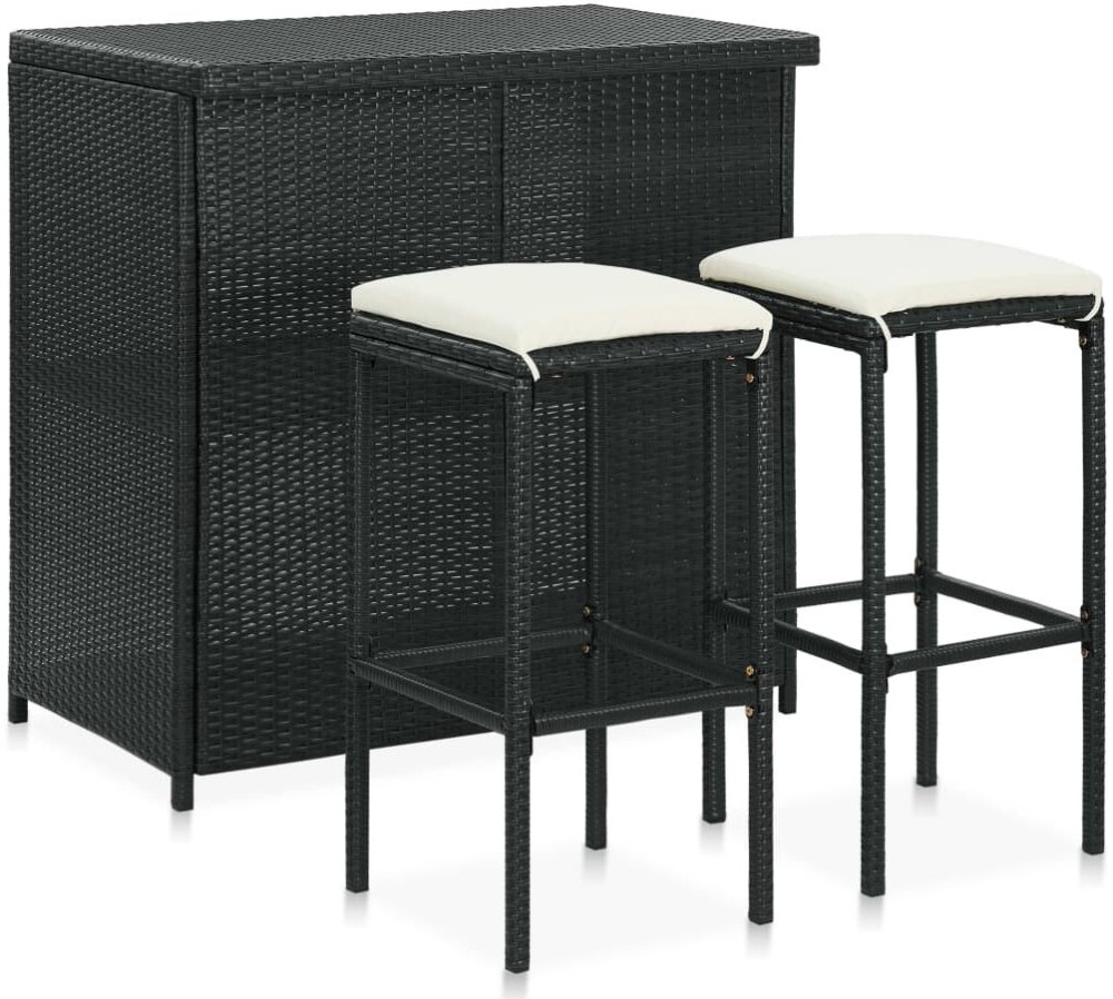 Bistro jídelní set má pevný ocelový rám, takže je velmi stabilní. PE ratan má dlouhou životnost a je odolný vůči povětrnostním vlivům a vhodný pro každodenní použití. Tento hospodský set má lehkou konstrukci a snadno se přenáší. Podušky na sedák a vestavěná opěrka nohou přispívají k pohodlnému posezení. Polyesterový potah na podušku se skrytým zipem lze sundat a vyprat. Barový stůl má také dvě poličky, kde najdete dostatek úložného prostoru, aby byly vaše důležité věci uspořádané a na dosah.