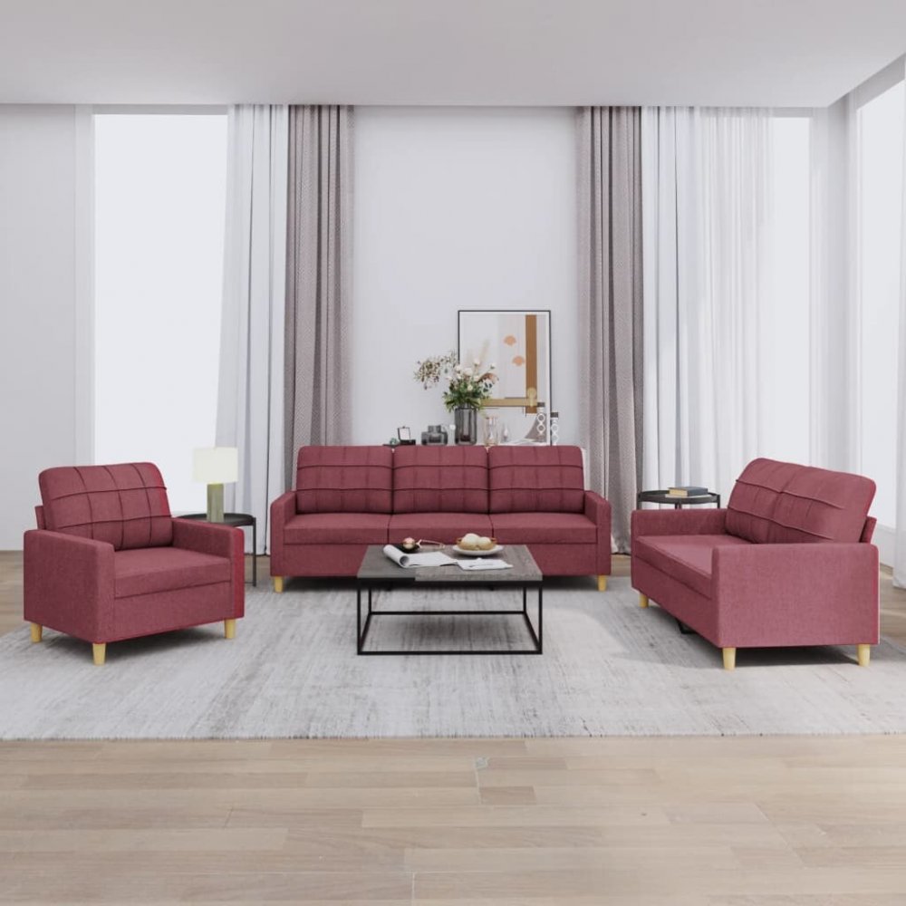 vidaXL 3dílná sedací souprava s poduškami vínová textil 11461.3201248