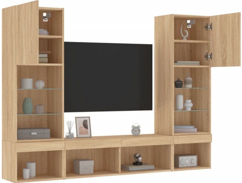 vidaXL 5dílná obývací stěna s LED dub sonoma kompozitní dřevo 3216692