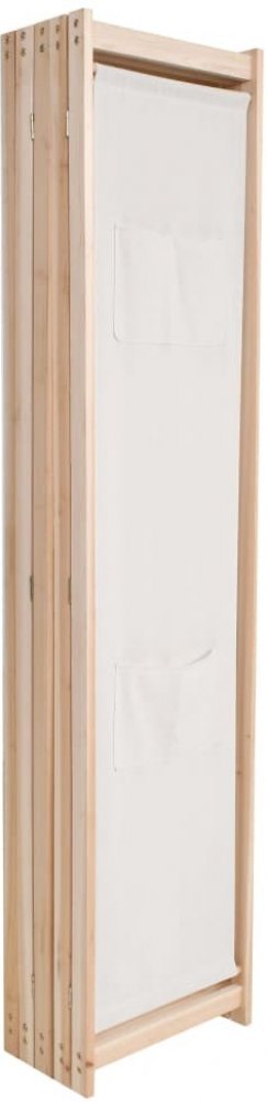Zástěna je zhotovená z dřevěného rámu a textilních panelů, takže ji můžete snadno složit, kdykoli ji nepoužíváte.