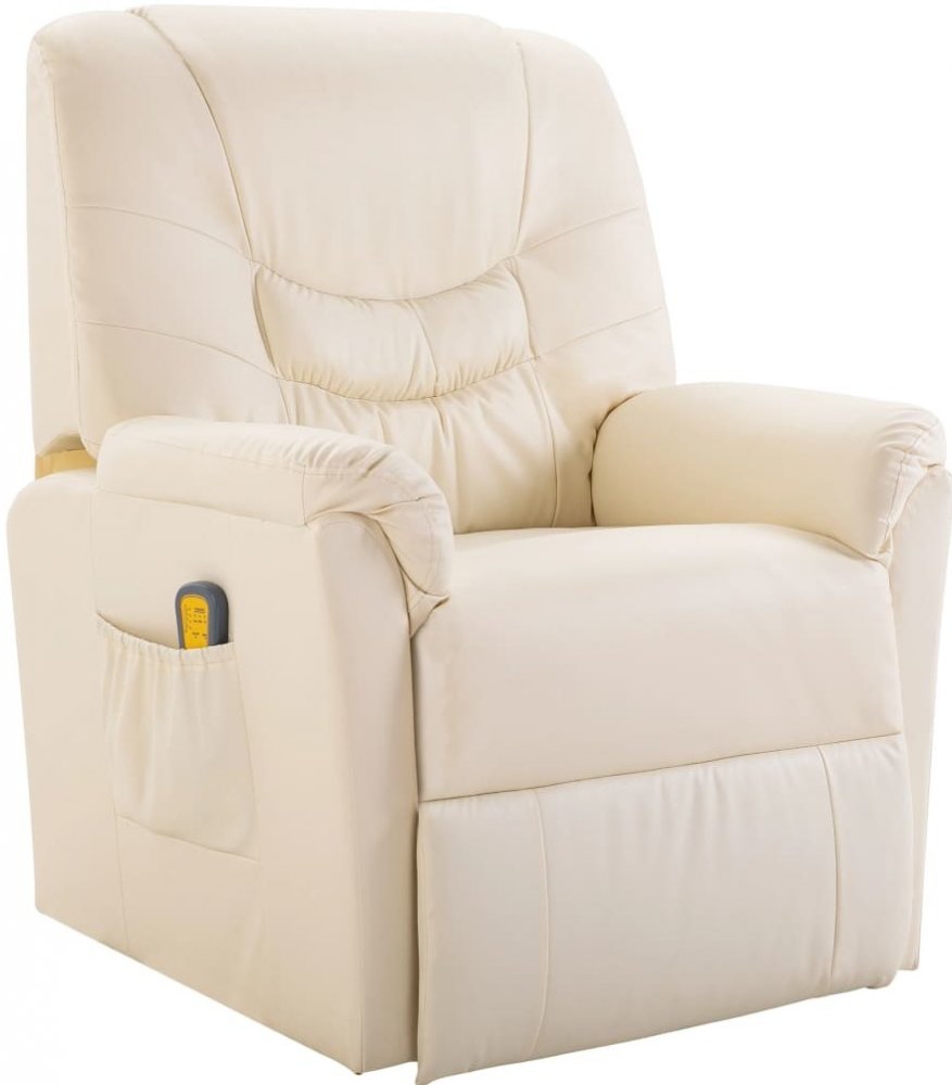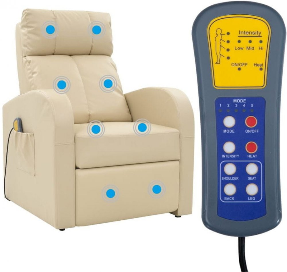 Elektrické masážní polohovací křeslo je čalouněné umělou kůží, polstrované pěnovým molitanem a má železný rám. Je tudíž stabilní a poskytne vám měkké posezení. Polohovací křeslo má 6 masážních bodů pro vaši hlavu, krk, záda a nohy. Tyto masážní body vysílají do vašeho těla relaxační vibrace. Přiložené dálkové ovládání vám umožní pohodlně vybírat z různých masážních programů. Opěradlo lze sklápět dozadu a opěrku nohou zvedat nahoru. V této poloze vám nic nebrání si pohodlně lehnout. Masážní polohovací křeslo je také vybavené postranní kapsou pro dálkové ovládání.