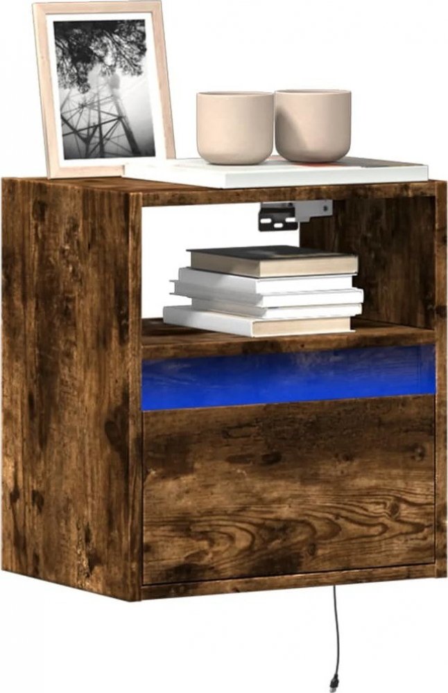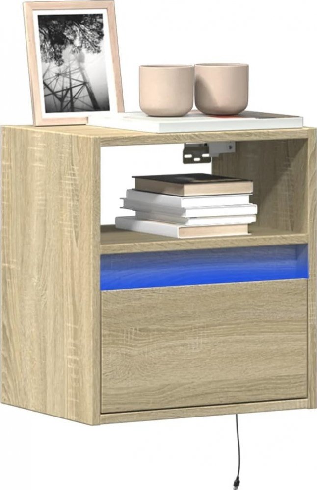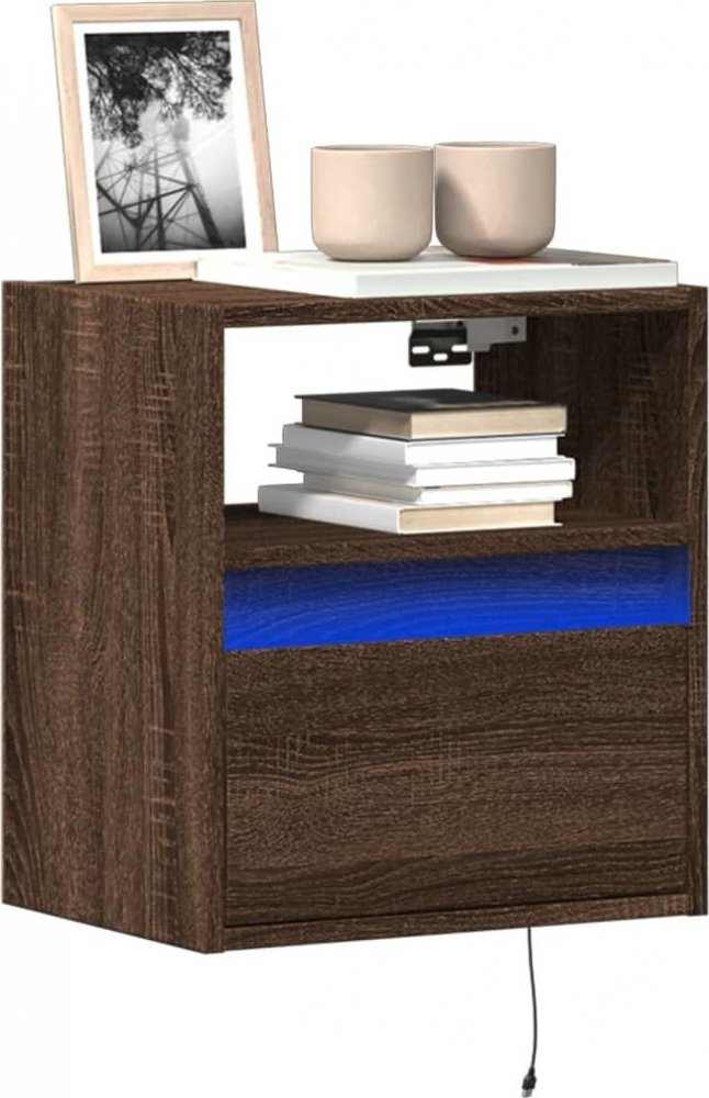 Tyto nástěnné televizní skříňky představují skvělý způsob, jak maximalizovat úložný prostor v domácnosti a zabránit hromadění nepořádku na podlaze.Stabilní a odolný materiál: Kompozitní dřevo je trvanlivý a stabilní materiál s hladkým povrchem, který je odolný vůči vlhkosti, kroucení a štěpení, takže se jedná o spolehlivou volbu pro různé projekty.RGB LED světla pro příjemnou atmosféru: Tato TV skříňka je vybavena LED osvětlením, které lze snadno přizpůsobit a vytvořit tak individuální světelnou atmosféru. Umožňuje přizpůsobit režimy, barvy a jas, abyste si vytvořili příjemnou atmosféru svého interiéru.Dostatek úložného prostoru: Tato TV skříňka má 1 zásuvku a 1 přihrádku a poskytuje dostatek prostoru pro přehledné uložení každodenních potřeb, jako jsou knihy, DVD, časopisy, mediální příslušenství a dalších předmětů, které tak budete mít neustále po ruce.Úspora místa: Nástěnný design maximalizuje nevyužitý prostor na stěně a přeměňuje jej na kompaktní a efektivní úložný prostor.DIY design: Plovoucí TV skříňka nabízí nekonečné možnosti designu, takže ji můžete použít samostatně nebo ji zkombinovat s dalšími nástěnnými TV skříňkami a vytvořit tak kompletní sestavu.Je dobré vědět:Šrouby a hmoždinky pro vnitřní stěnu nejsou součástí dodávky. Doporučujeme použít šrouby a hmoždinky vhodné speciálně pro stěny u vás doma. Pokud si nejste jisti, můžete se poradit s odborníkem. Přečtěte si všechny kroky pokynů a postupujte podle nich.Produkt je vybaven USB konektorem, který vyžaduje certifikovaný zdroj napájení 5V USB (není součástí dodávky). Důležité: Instalace by měla být provedena přesně podle tohoto návodu - jinak může při nesprávné instalaci dojít k ohrožení bezpečnosti. Pravidelně kontrolujte, zda jsou kotvy bezpečně zajištěny. Stabilitu vysokých předmětů může ovlivnit koberec s hustým vlasem nebo nerovná podlaha. S výrobkem je dodáváno zařízení pro upevnění na stěnu, musíte si však obstarat vhodné upevňovací prvky pro váš typ stěny. Před vrtáním otvorů zkontrolujte, zda uvnitř stěny nejsou elektrické nebo vodovodní kabely (pokud si nejste jisti, požádejte o odbornou radu kvalifikovaného řemeslníka). Místní železářství bude mít potřebné vrtáky a upevňovací prvky a v případě potřeby vám poradí. V případě pochybností využijte služeb kvalifikovaného řemeslníka, který výrobek nainstaluje a ukotví. Upozorňujeme, že je třeba používat pouze certifikovaný vstup DC 5V. Vyšší napětí může způsobit přehřátí, které může vést k poškození zařízení a potenciálnímu riziku přehřátí a požáru. Nepřipojujte tento výrobek k jinému zdroji napájení, než který je popsán v návodu, na výrobním štítku nebo výslovně doporučen společností vidaXL. Tento spotřebič by neměly používat děti ve věku 14 let a mladší a osoby se sníženými fyzickými, smyslovými a duševními schopnostmi nebo osoby s nedostatkem zkušeností a znalostí týkajících se používání elektronických spotřebičů. Elektrický proud je nebezpečný. Poškození a nesprávná instalace, používání nebo úpravy (výměna jednotlivých součástí) mohou vést k poškození přístroje, což může mít za následek úraz elektrickým proudem a ohrožení uživatele. Nepoužívejte tento výrobek ve výbušném prostředí, například v přítomnosti hořlavých kapalin, plynů a prachu, nebo při teplotě nad 50 stupňů Celsia. Nezapínejte výrobek, pokud je viditelně poškozený připojovací kabel nebo napájecí zdroj. Pokud je vnější ohebný kabel nebo šňůra tohoto svítidla poškozena, musí být vyměněna výhradně výrobcem nebo jeho servisním zástupcem nebo podobně kvalifikovanou osobou, aby se zabránilo nebezpečí. Při instalaci a údržbě vypněte napájení. Ujistěte se, že žárovky vychladly. Světelný zdroj tohoto svítidla není vyměnitelný; po skončení životnosti světelného zdroje je třeba vyměnit celé svítidlo. Pouze pro použití v interiéru, nepoužívejte tento výrobek venku.