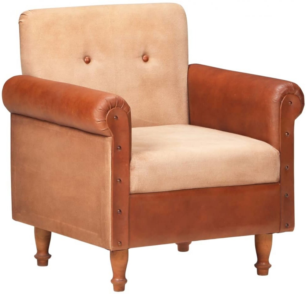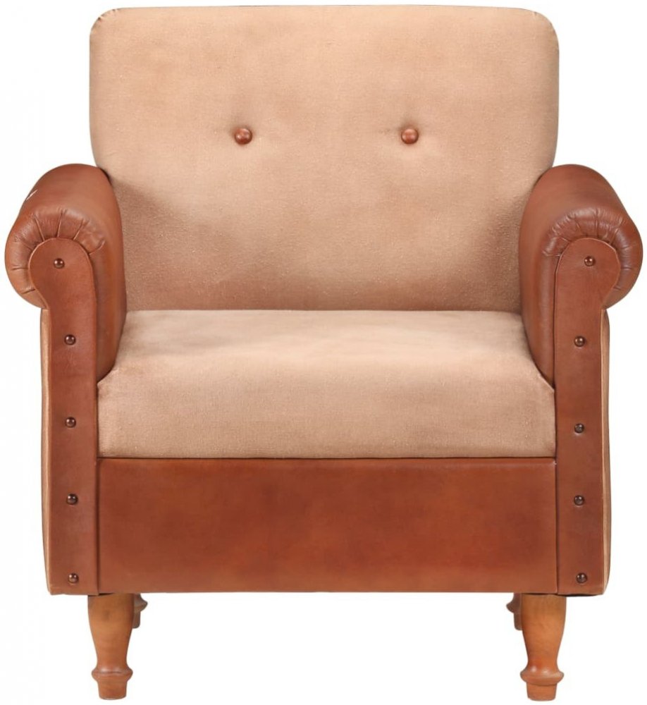 VidaXL klubové hnědé pravá kůže a plátno 320780