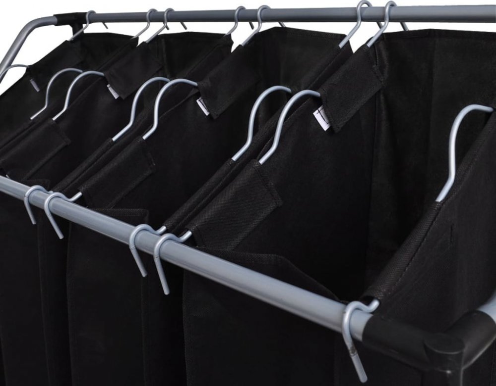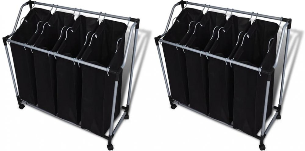 Tyto dva koše na prádlo vám pomohou s tříděním špinavého prádla v každé prádelně či koupelně. Představují skvělé řešení pro vaše osobní potřeby. Každý z košů na prádlo je vybavený 4 rozměrnými vaky na třídění prádla, které lze snadno vyjmout a přenášet pomocí ocelových rukojetí. Kolečka a rukojeti na obou koncích rámu prádelních košů usnadňují přemisťování celé konstrukce. Odolný ocelový rám unese...