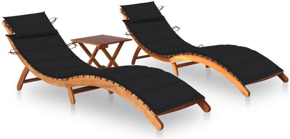 vidaXL lehátka 2 ks se stolkem a poduškami masivní akácie 3077378